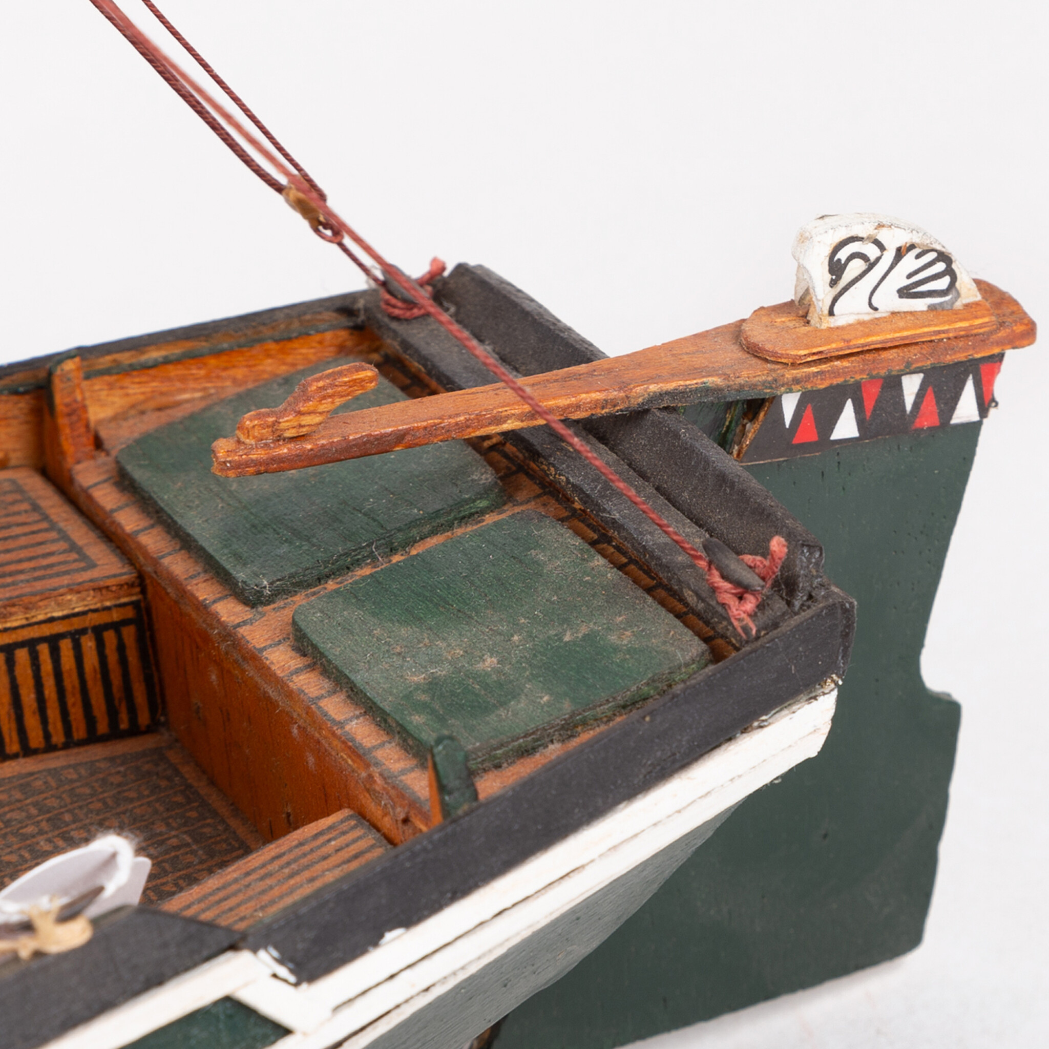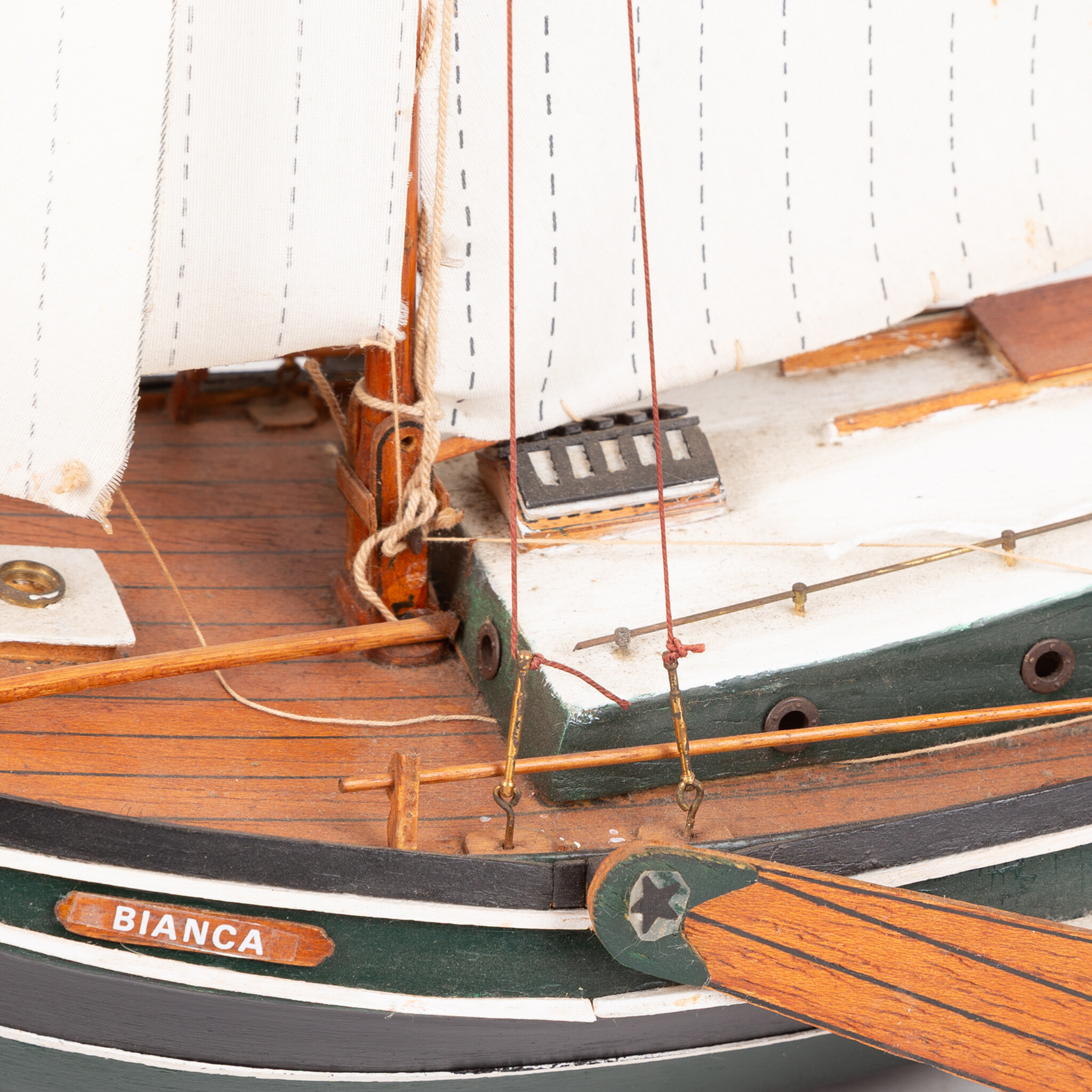 Een scheepsmodel van een schouw. Opschrift: "Bianca". Een eenmaster met drie zeilen, een opbouw en zijzwaarden. Op het dek ligt het roer. De schouw rust op twee plankjes en is afkomstig van voormalig Scheepsvaartmuseum te Gasselternijveen, 1988-2005. Datering: 20ste eeuw. Conditie: goed, met hier en daar gebruikssporen. Afmetingen: hoogte ca. 50.0 cm; breedte ca. 46.0 cm; diepte ca. 13.0 cm.