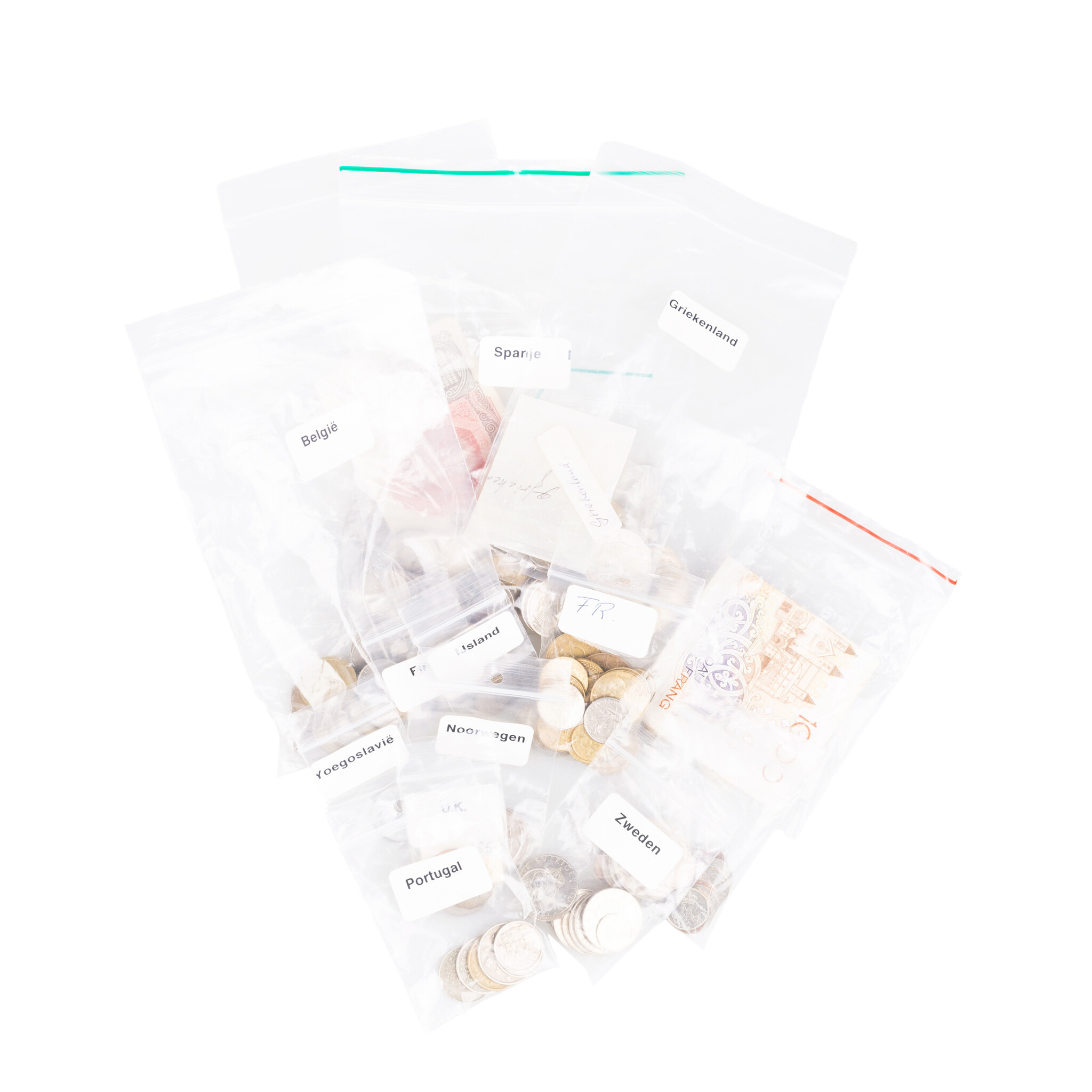 Grote set Europese munten voor de verzamelaar. In de set zitten munten uit: België, Denemarken, Finland, Frankrijk, Griekenland, Italië, Joegoslavië, Luxemburg, Noorwegen, Oostenrijk, Polen, Portugal, Spanje, Tsjechië, Verenigd Koninkrijk, Ijsland en Zweden. In de set zit ook briefgeld uit Luxemburg en Oostenrijk, Italiaanse koffiemachine muntjes en casino munten uit Oostenrijk. Datering: 20ste eeuw. Conditie: gebruikt tot goed. Afmetingen: muntjes variërend van ca. ø 1,5-3 cm; briefgeld: 6,5 x 11 cm en 7,5 x 15 cm.