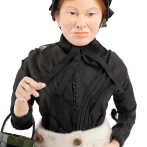 Set van twee poppen, dolster en boetster. Datering 20ste eeuw. Pop van een dolster van de Noord-Friese kust door Cisca Heere, circa 1985. Pop in klederdracht, voorstellende een nettenboetster met stoel, boetprop en net. Condite: De poppen zijn in goede conditie, de middelvinger van de dolster is beschadigd. Afmetingen: Dolster: breedte 13,5 cm, lengte 40,5 cm. Boedster: hoogte 37 cm, breedte 20 cm, lengte 10 cm.