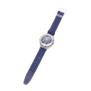 Set van drie Swatch horloges, SEK 105 'Red Sun', SDZ 102 'Thalassios', SDK 124 'Sailor'. Swatch was in 1996 de officiële 'timekeeper and partner' van de Olympische Spelen in Atlanta. Conditie: Het horloge bevindt zich in originele verpakking en is ongedragen, het polsbandje kan verzwakt zijn door verstrijken van de tijd. Afmetingen: ca. 24,5 x 6 x 2 cm.