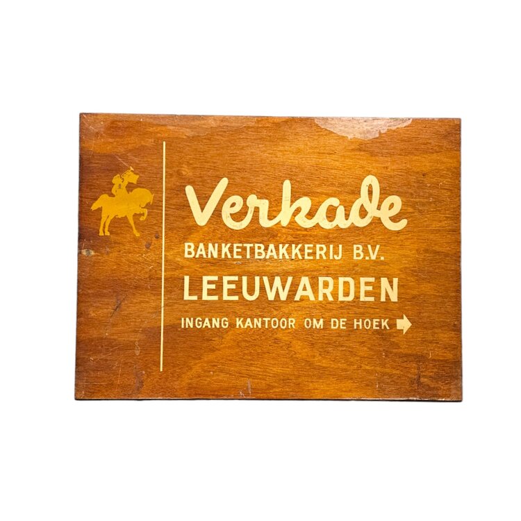 Bord Verkade banketbakkerij Leeuwarden. Datering: 20ste eeuw. Conditie: slijtage aan laklaag. Afmetingen: ca. 47.0 x 62.0 x 2.0 cm.
