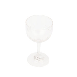 Klein wijnglas, normaal model, 6 stuks. Aangezet lang been, olijfslijpsel op bak. Datering: 20ste eeuw. Conditie: lichte gebruikssporen. Afmetingen: ca. 12 x 6,5 cm.