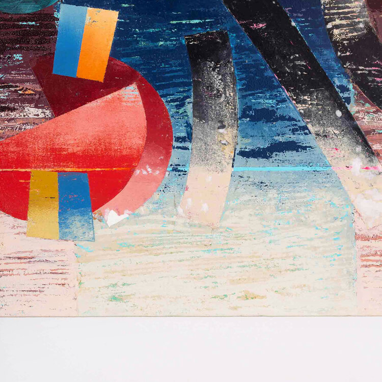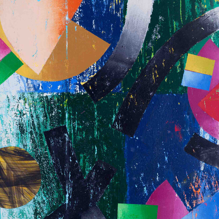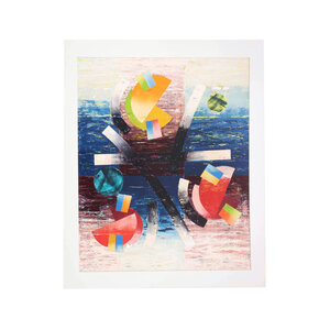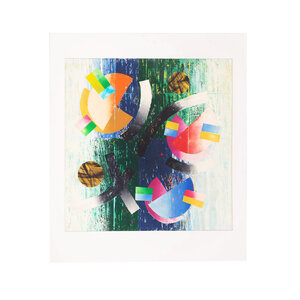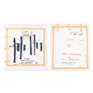Theo Schuurman, Les Pyrenees, 1997. Twee acrylwerken op papier in passe-partout zonder lijst. Beide werken hebben een abstracte en kleurrijke afbeelding van verschillende vormen in o.a. blauw, groen, rood en oranje. Signatuur en titel staat op de achterkant van de werken. Conditie: De werken hebben beschadigingen aan de voor- en achterkant. Afmetingen passe-partouts: 100 x 80 cm / 90 x 80 cm.