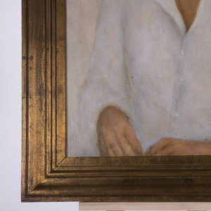Op dit portret is een vriendin van de kunstenaar, Hedi, afgebeeld in een witte blouse tegen een crèmekleurige achtergrond. Gesigneerd linksboven. Theo Swagemakers (1898-1994) is een bekende Nederlandse schilder van voornamelijk portretten en stillevens. Hij genoot zijn opleiding in Brussel en Parijs en heeft verschillende beroemdheden mogen portretteren, zoals een groot deel van de Koninklijke familie. Hiervoor heeft hij de Thérèse van Duyl-Schwartzeprijs in ontvangst mogen nemen in 1958. Datering: 1987. Afmetingen: lijst ca. 98 x 77 cm, werk ca. 80.5 x 60 cm. Conditie: het werk is in prima conditie. De lijst heeft gebruikssporen.