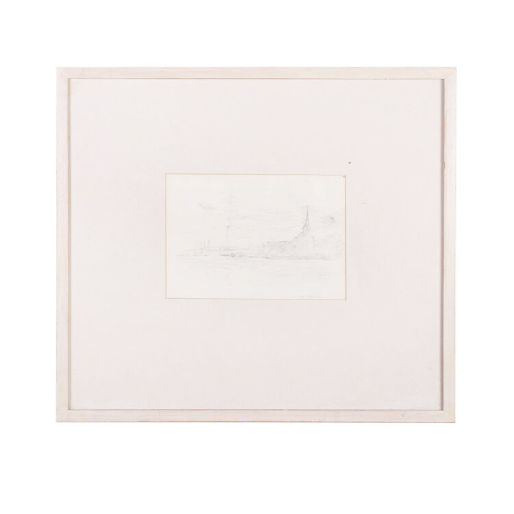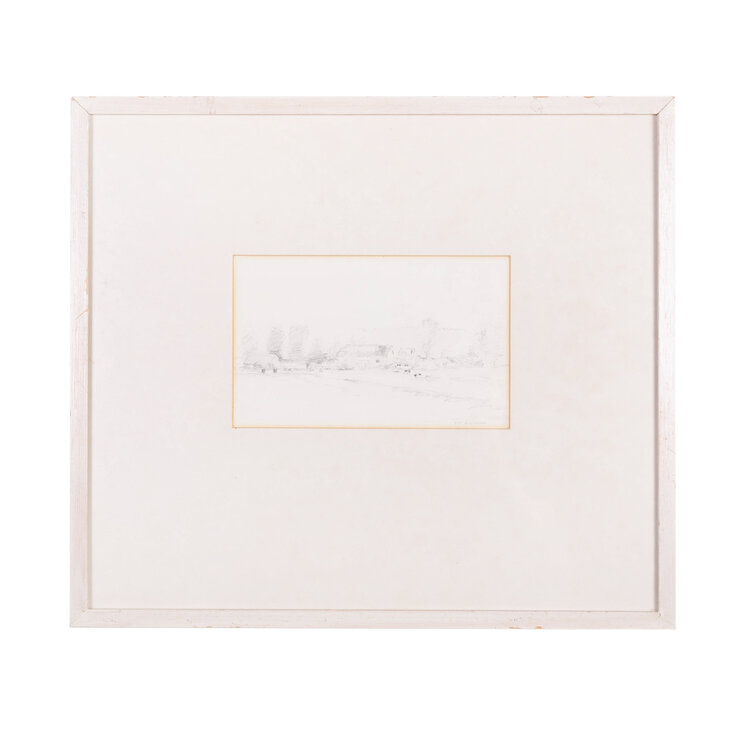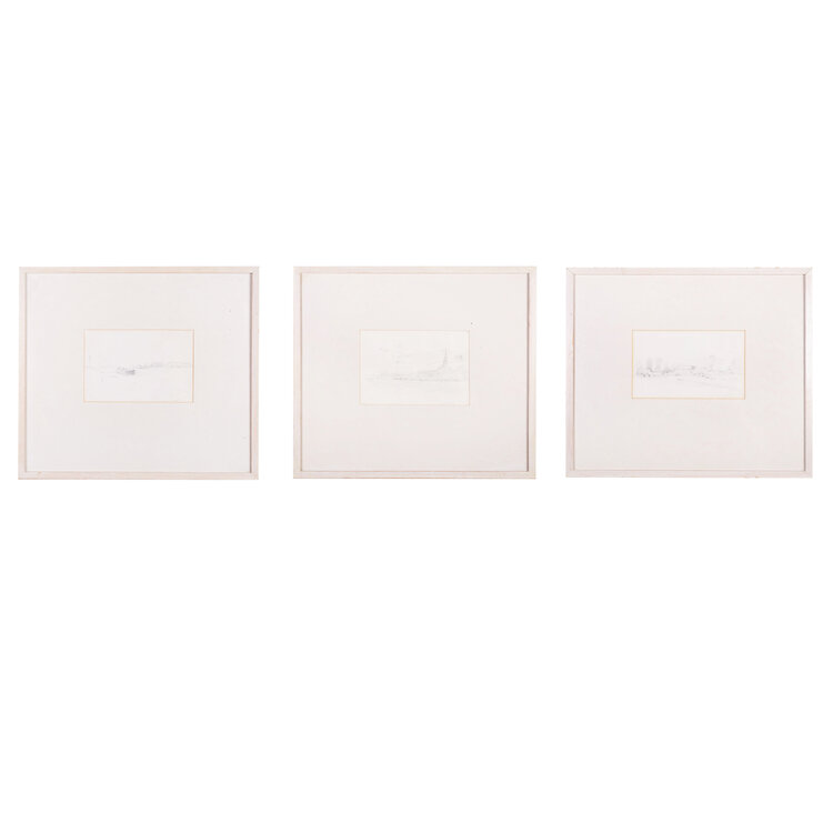 Set van drie potloodtekeningen op papier met landschappen door Piet Bruinsma uit 1984. Dordtse kil, Groothoofd en Polderlandschap; alle in houten lijst. Conditie: de werken zijn hier en daar verkleurd aan de randen door zuurhoudend passe partout en alle lijsten tonen gebruikssporen; bij een lijst zit de achterplaat los. Afmetingen: werk 12,5 x 18,5 cm; 13 x 19 cm en 12 x 19 cm, lijsten zijn 36,5 x 42 cm.