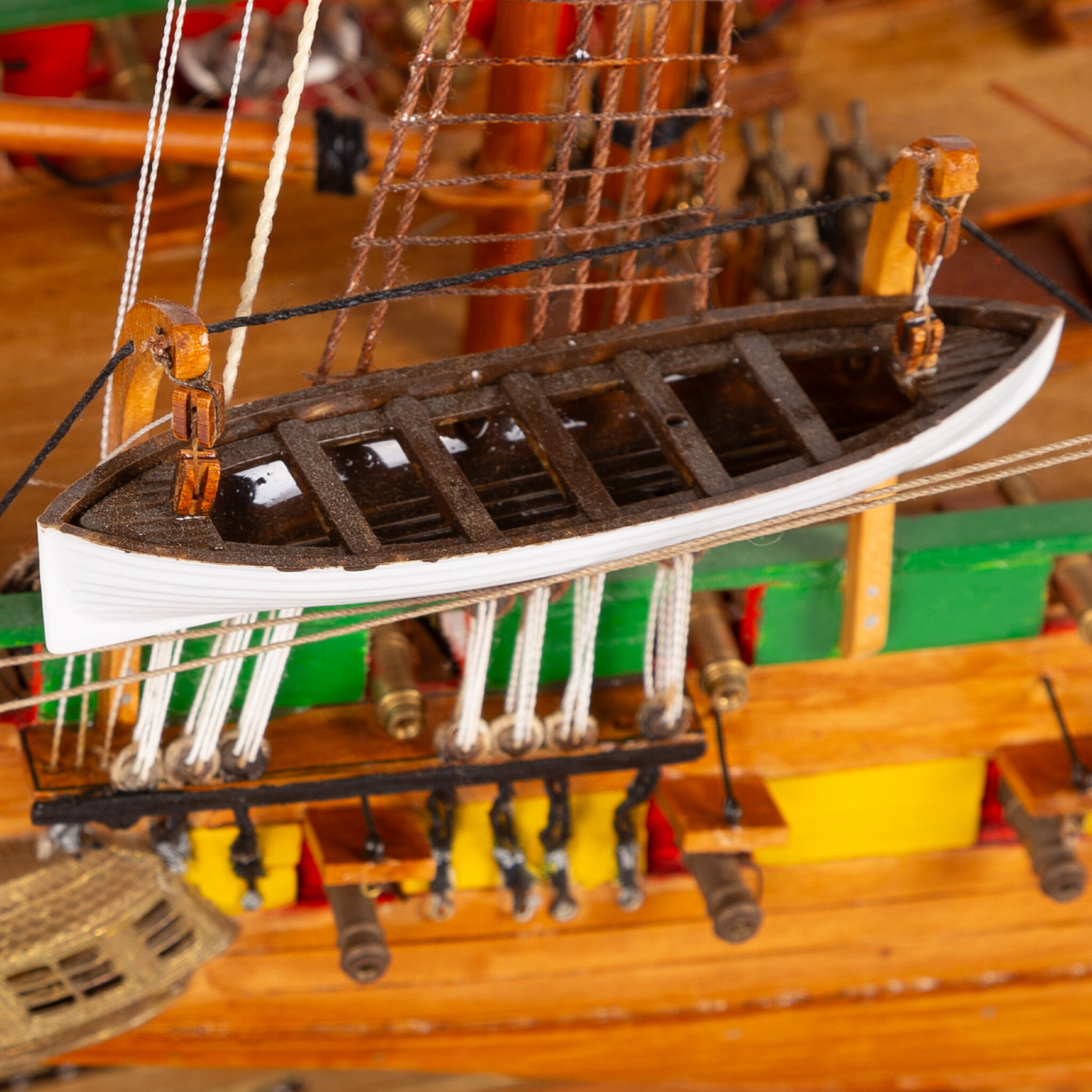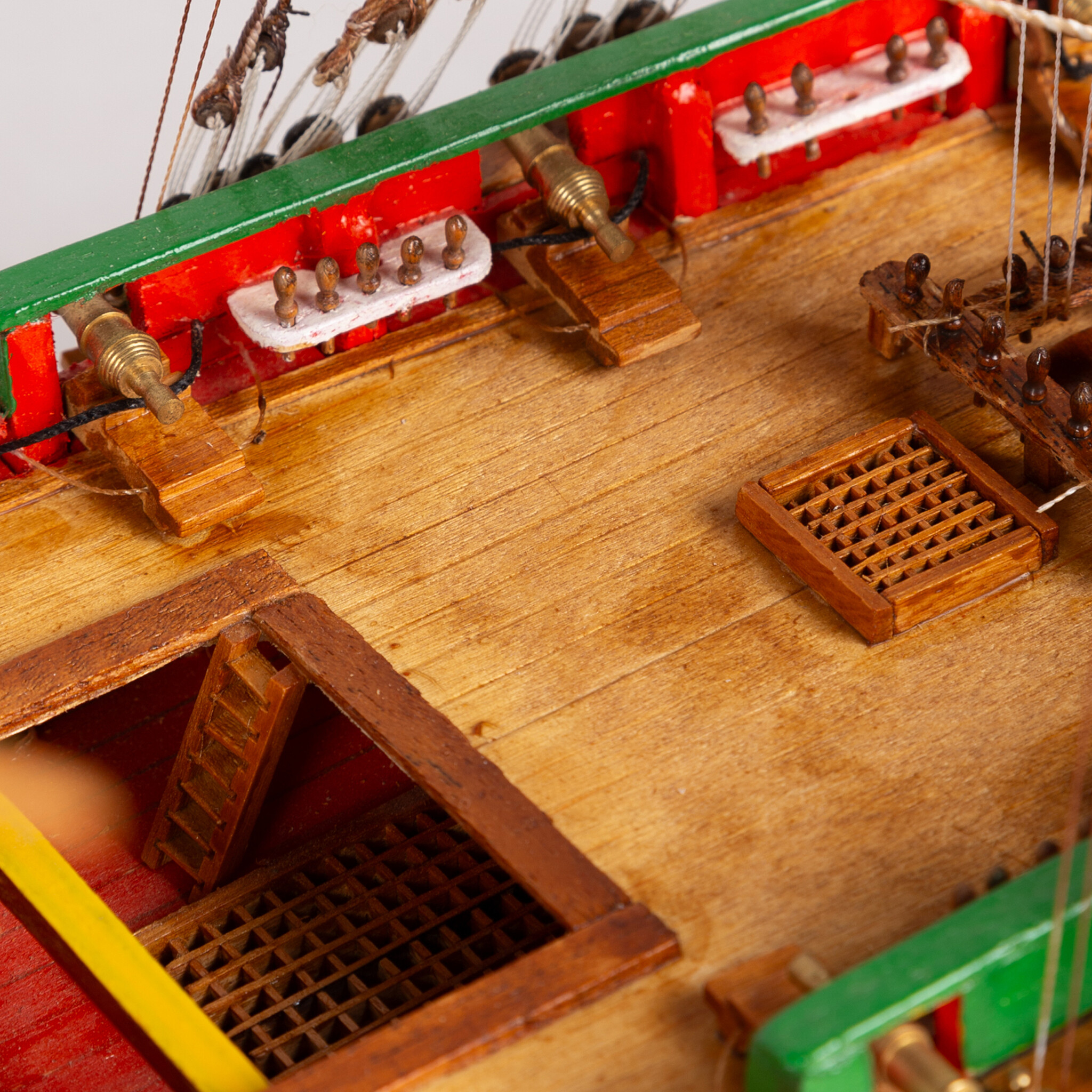 Een scheepsmodel van een driemaster geplaatst in een vaste vitrine. De driemaster voert de Amerikaanse vlag. Deze klipper is afkomstig van voormalig Scheepvaartmuseum te Gasselternijveen, 1988-2005. Datering: 20ste eeuw. Conditie: goed, met hier en daar minimale gebruikssporen. Afmetingen: hoogte ca. 77.0 cm; breedte ca. 104.0 cm; diepte 41.0 cm.