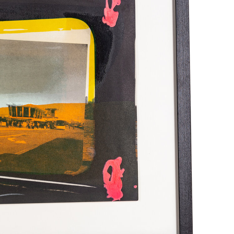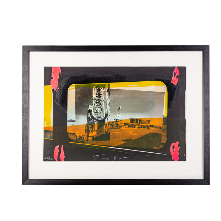 Tony Soulié, Roaring 20's, jaartal onbekend. Litho in zwart houten lijst, oplage 70/120. Geprinte collage van een gebouw en banner met de tekst 'Roaring 20's'. Linksonder oplagenummer en daarnaast signatuur. Conditie: goed, gebruikssporen aan lijst. Afmeting werk zonder lijst: 32 x 48 cm; incl. lijst: 47 x 63 cm.
