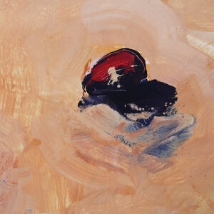 Toon Kuijpers, Field 10, jaartal onbekend. Gouache op papier in metalen lijst. Abstracte compositie van kleurrijke objecten voor een gele achtergrond. Bovenin een zwarte balk met 'O X O X O' en onderin een balk met '= 6 X 9 X 6 X 9 ='. Conditie: goed, gebruikssporen aan lijst. Afmeting lijst: 90 x 70 cm.