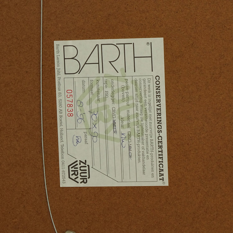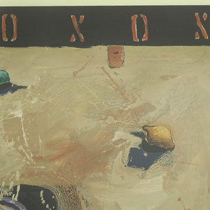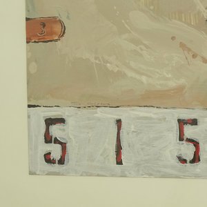 Toon Kuijpers, Field 8, gouache op papier, jaartal onbekend. Voorstelling met verschillende gekleurd objecten op een neutrale achtergrond. De voorstelling is omlijst met aan de bovenzijde een zwarte band met letters, en aan de onderzijde een witte band met cijfers. Conditie: Het werk is in goede staat, de lijst toont sporen van gebruik. Afmetingen werk zonder lijst: 50 x 70 cm; incl. lijst: 91,5 x 71 cm.