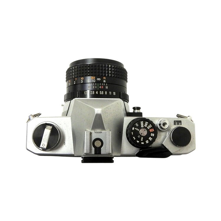 Topcon RE 200 kleinbeeldcamera met Copal square sluiter. Bouwjaar 1977. Conditie: werkt nog perfect. Afmetingen: H 9,5 cm, Br. 15 cm, D. 9 cm.