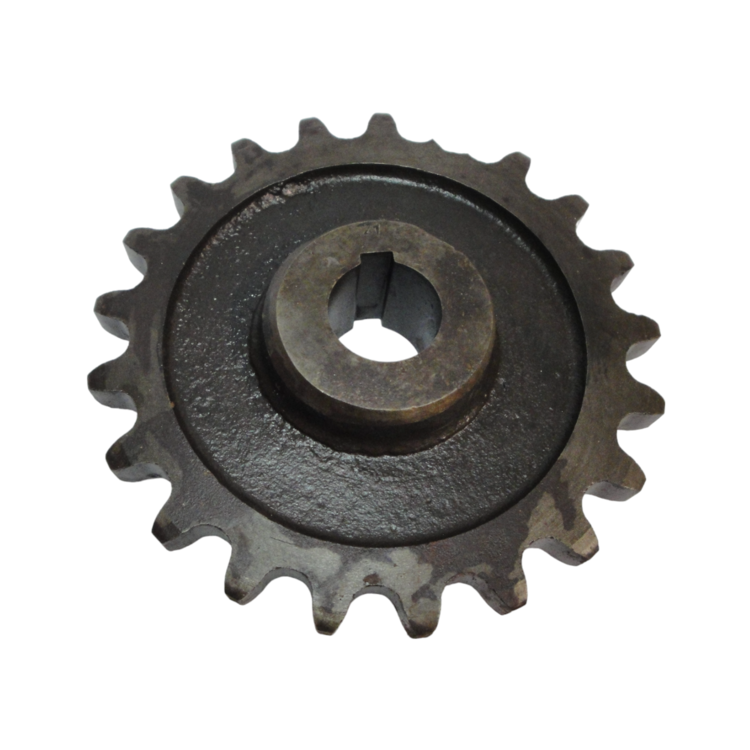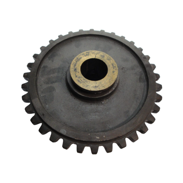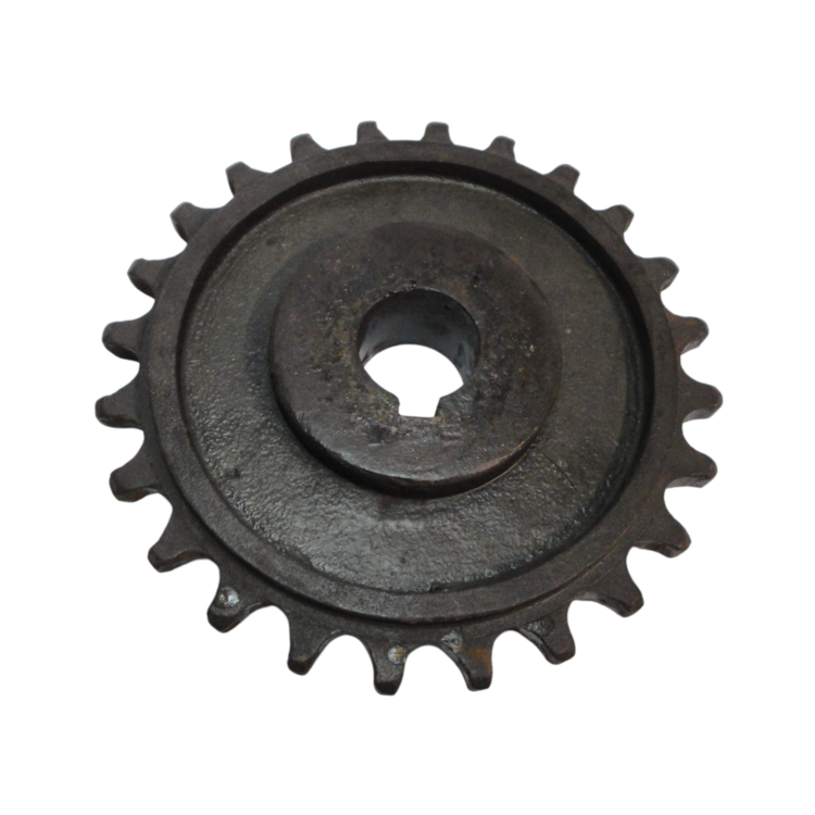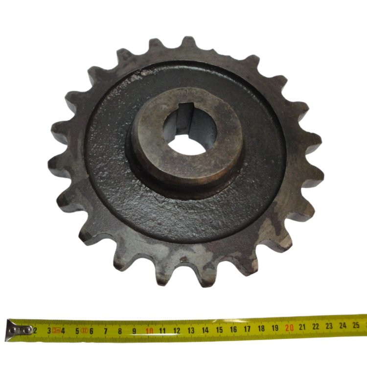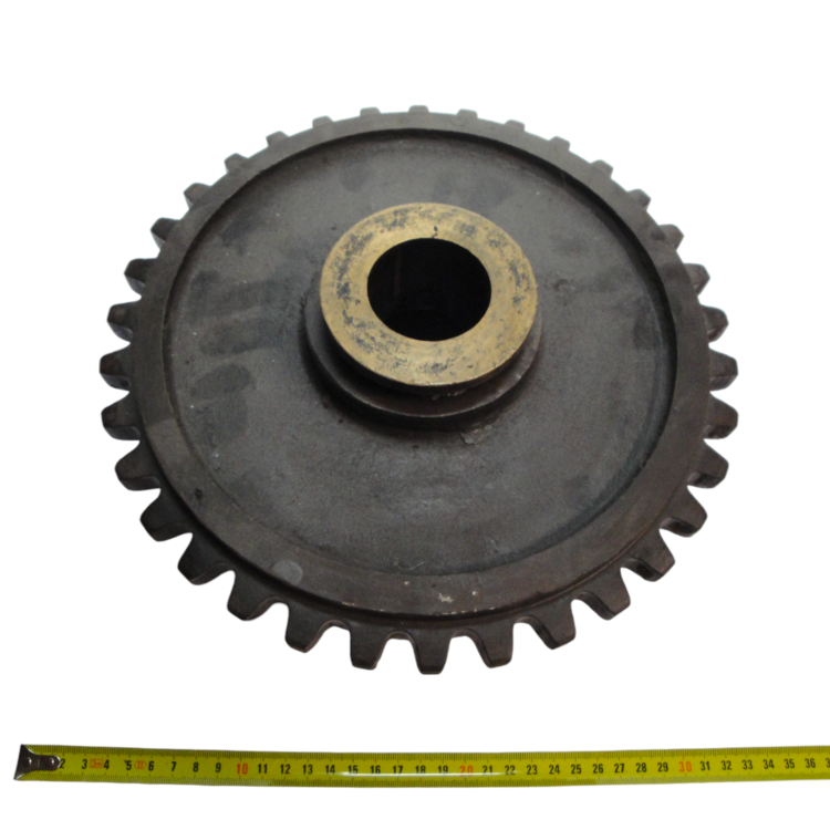 Set van twee grote metalen kettingwielen en een tandwiel. Datering: onbekend. Conditie: prima. Afmetingen: ca. ø31,0 x 13,0 cm en ø22.0 x 5.0 cm. Afmetingen tandwiel: ø28,0 x 4,5 cm.