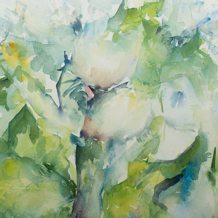 Willy van Haard, 'Berenklauw', 1985. Aquarel op papier in metalen lijst. Schildering van een berenklauw plant in groen en blauw. Signatuur rechtsonder. Conditie: goed, enkel wat gebruikssporen aan de lijst. Afmetingen lijst: 85,5 x 65,5 cm; beeldvlak: 65 x 47 cm.