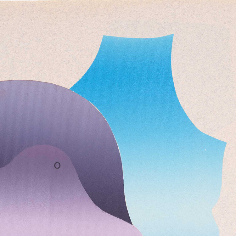 Wim Koster, 'Luilaknacht 1980', 1980. Sjabloondrukken op papier zonder lijst in o.a. de kleuren blauw en paars. Abstracte composities van verschillende vormen. Het werk is een unicaat. Signatuur middenonder. Conditie: Papier verkleurd, kleine vouwtjes, lichte bobbeling, wat vermoedelijk tijdens het productieproces is ontstaan. Afmetingen papier: ca. 65 x 50 cm.