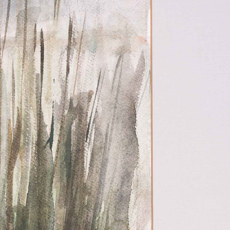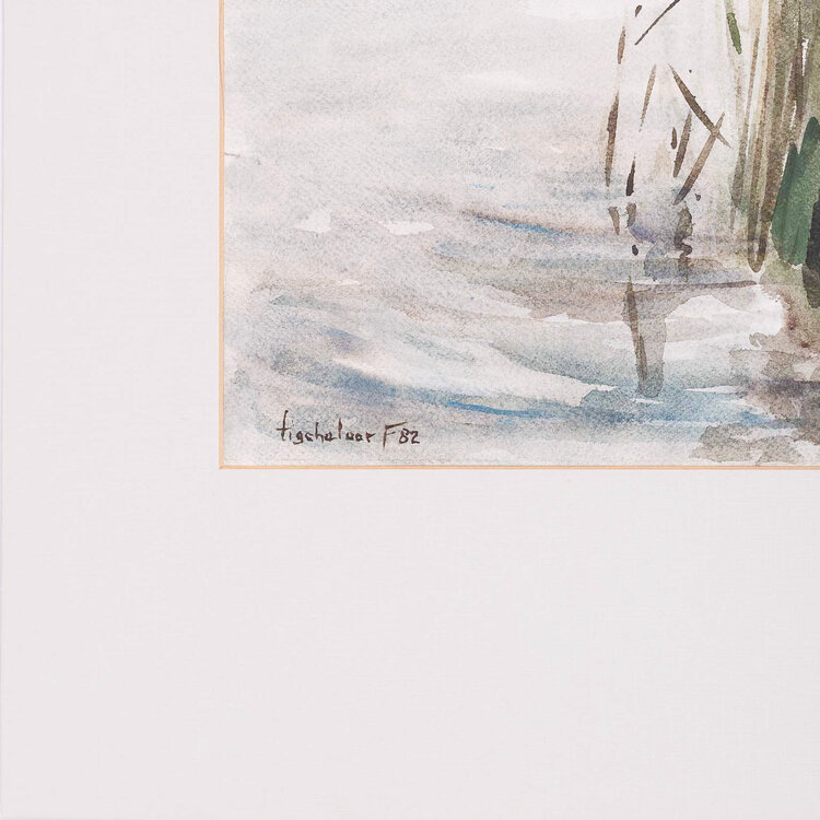 A. Tigchelaar, Landschap, 1982. Aquarel in passe-partout zonder lijst. Afbeelding van riet aan de rechterkant van de waterkant. Linksonder signatuur. Conditie: goed. Afmeting passe-partout: 65 x 50 cm.