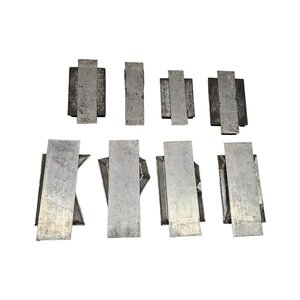 Acht chocoladelettermallen. Letters: S I N T en K P R Z. Datering: 20ste eeuw. Conditie: set SINT heeft oxidatieschade. Afmetingen: set SINT ca. 18.5 x 9.5 cm, set KPRZ ca. 23.5 x 11.5 cm.