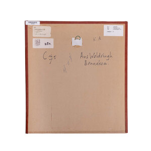Ans Woldringh, Landschapje C 75, 1974. Pastelkrijt op papier in passe-partout. Illustratie van een heuvellandschap met water. Signatuur rechtsonder. Conditie: werk is in goede conditie, passe-partout is verkleurd. Afmeting 37 x 38,5 cm.