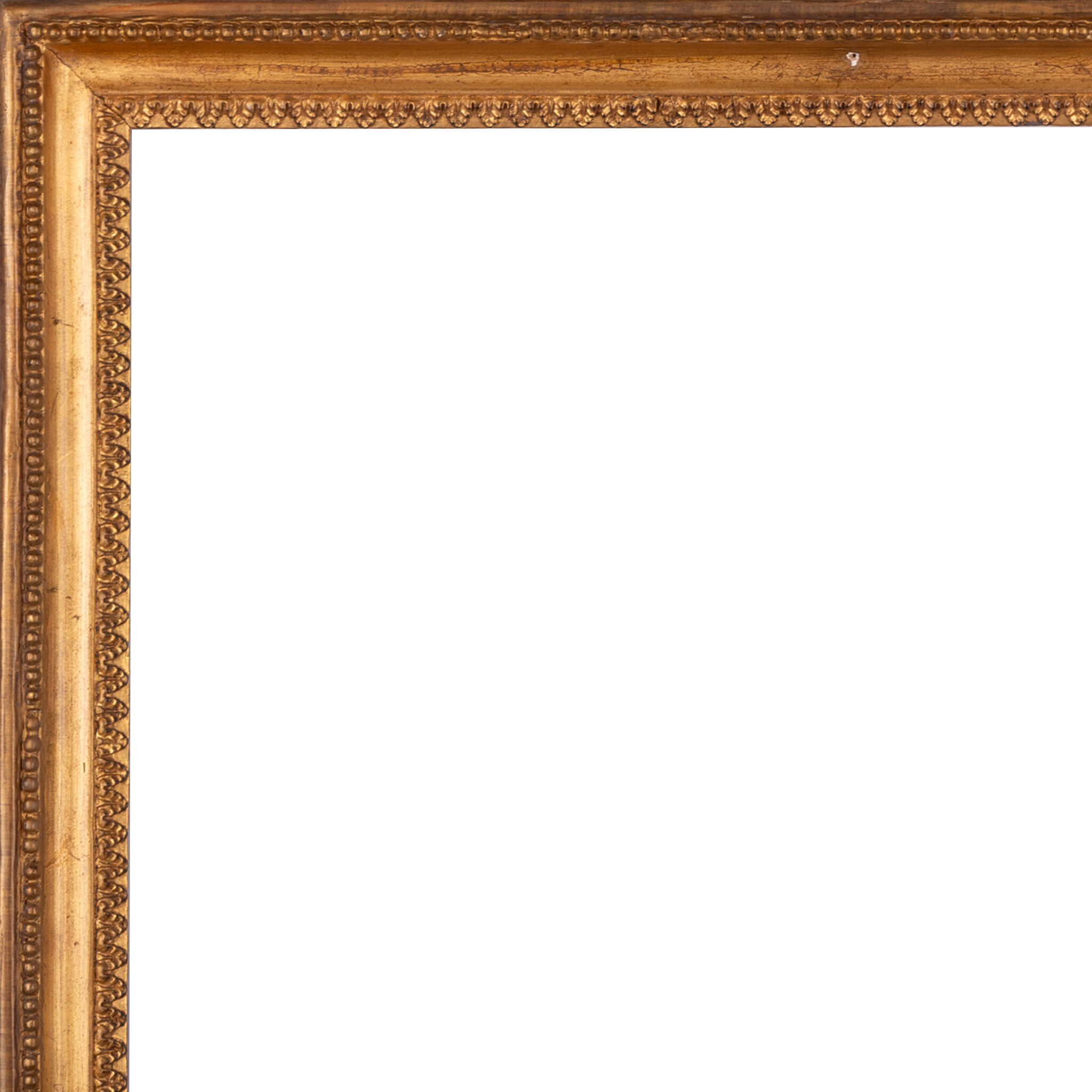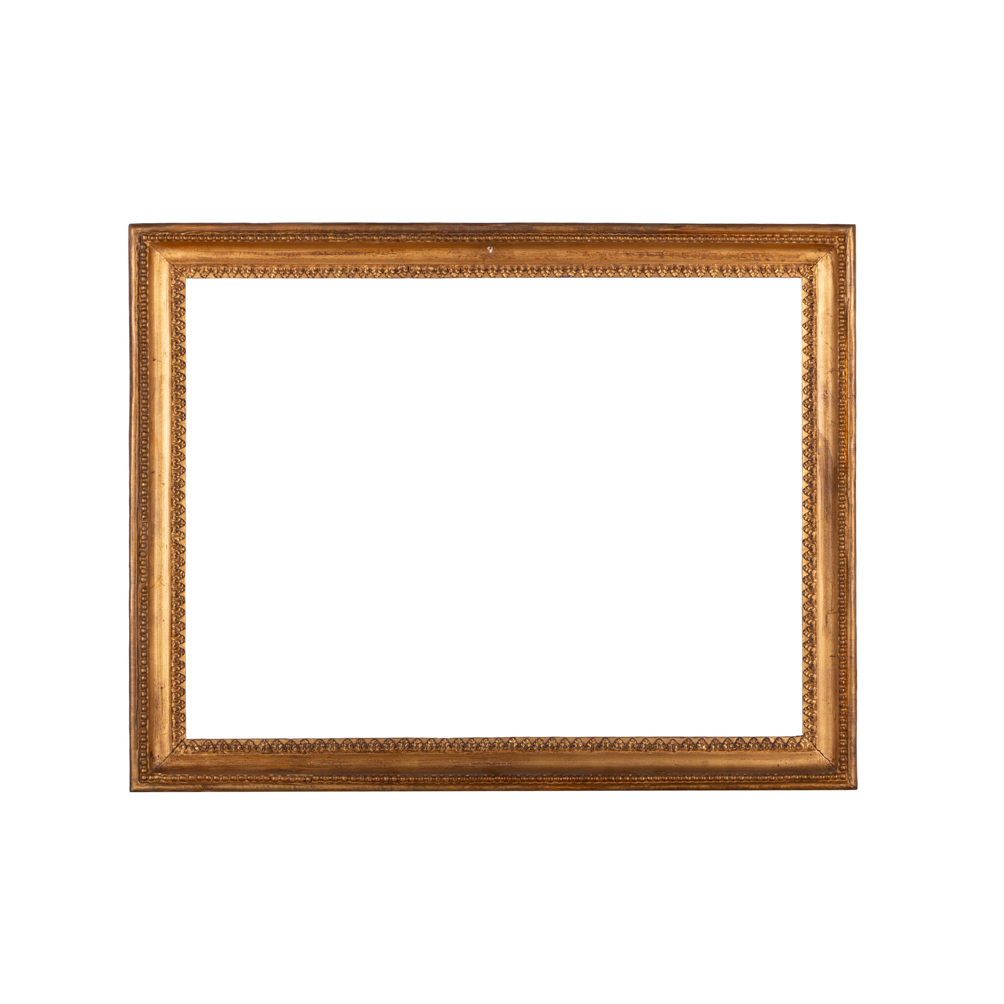 Antieke goudkleurige lijst; ca. 46 x 58,5 x 3 cm. Antieke goudkleurige houten lijst, versierd met reliefpatroon. De lijst heeft gehangen in Het Scheepvaartmuseum in Amsterdam. Datering: eind 19e / begin 20ste eeuw. Conditie: vertoont sporen van gebruik en ouderdom, klein gaatje in de lijst. Afmetingen: Buitenmaat ca. 46 x 58,5 x 3 cm; Binnenmaat ca. 39 x 52 cm.