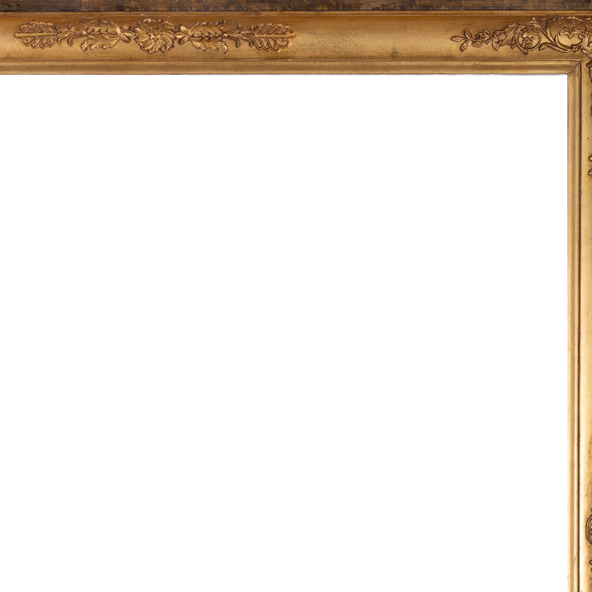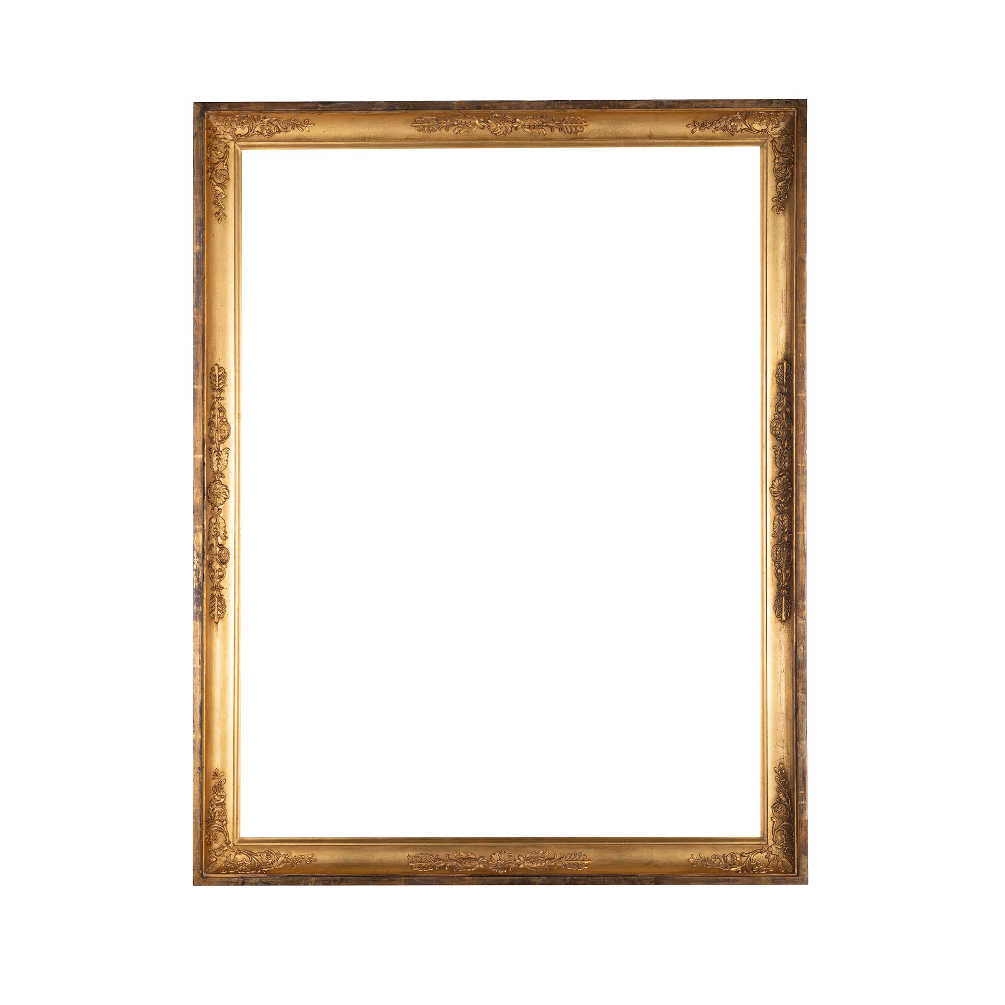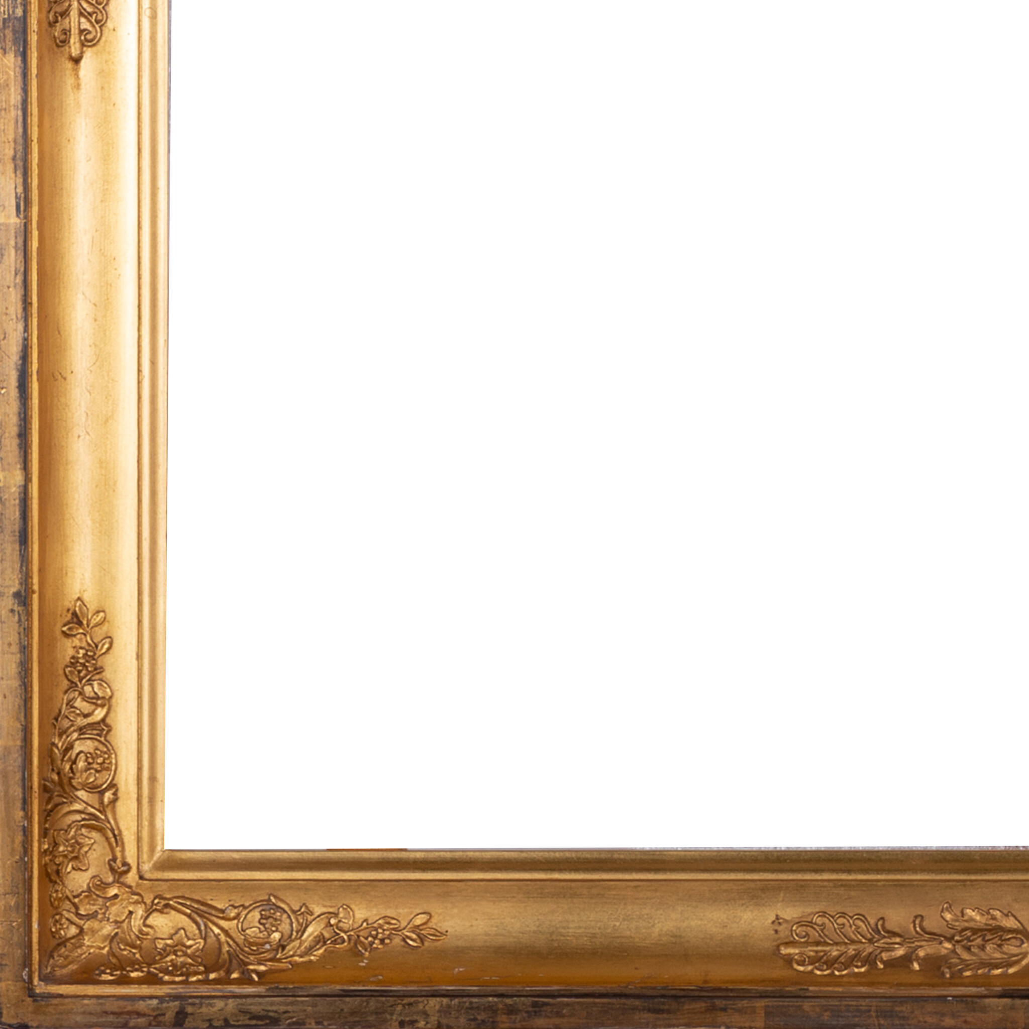 Antieke goudkleurige lijst; ca. 68 x 89 x 5 cm. Antieke goudkleurige houten lijst, met versiering in het midden van de randen en in de hoeken. De lijst heeft gehangen in Het Scheepvaartmuseum in Amsterdam. Datering: eind 19e / begin 20ste eeuw. Conditie: vertoont sporen van gebruik en ouderdom. Afmetingen: Buitenmaat ca. 68 x 89 x 5 cm; Binnenmaat ca. 60,5 x 81 cm.