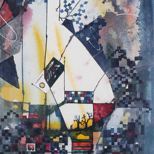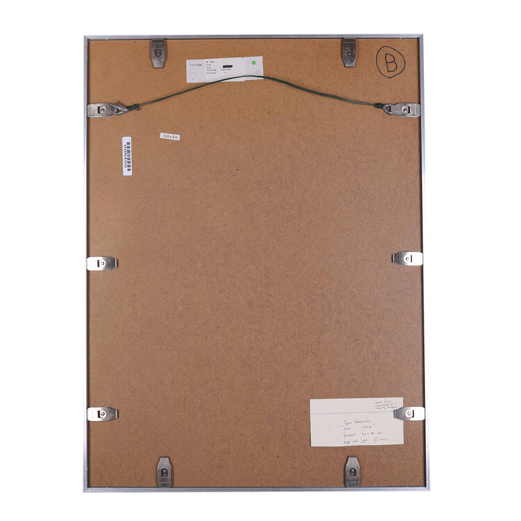 Bart Filet, Chip, 1984. Aquarel in metalen lijst. Abstracte voorstelling van donkere kleuren met accenten in rood en geel. Rechtsonder signatuur en jaar. Conditie: goed, gebruikssporen aan lijst. Afmetingen: 80 x 60 cm.