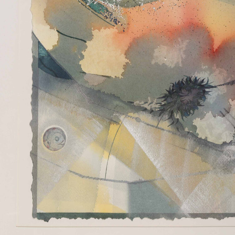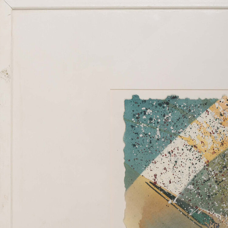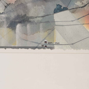 Bart Filet, Cycli II, 1993. Aquarel op papier in metalen lijst. Abstracte voorstelling van kleurrijke vlakken en lijnen. Conditie: goed, gebruikssporen aan lijst. Afmetingen: 50 x 75 cm.