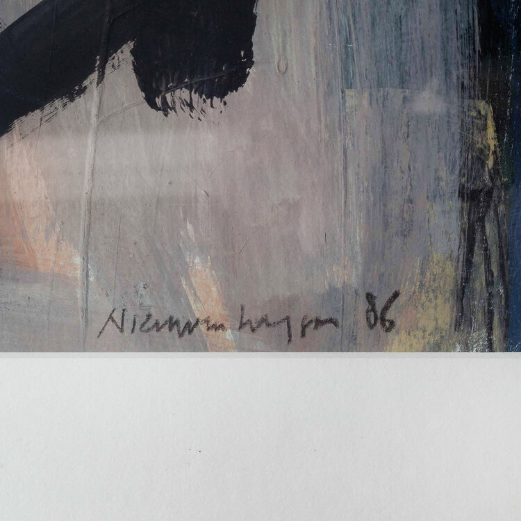 Bob Nieuwenhuysen (Amsterdam, 1946 - 2010), 'Vertakking', 1986. Gouache op papier in metalen lijst. Abstracte compositie in zwart en grijs. Signatuur rechtsonder. Conditie: werk is in goede staat, lijst toont lichte sporen van gebruik. Afmetingen lijst: 81 x 101 cm, beeldvlak: 57 x 77,5 cm.