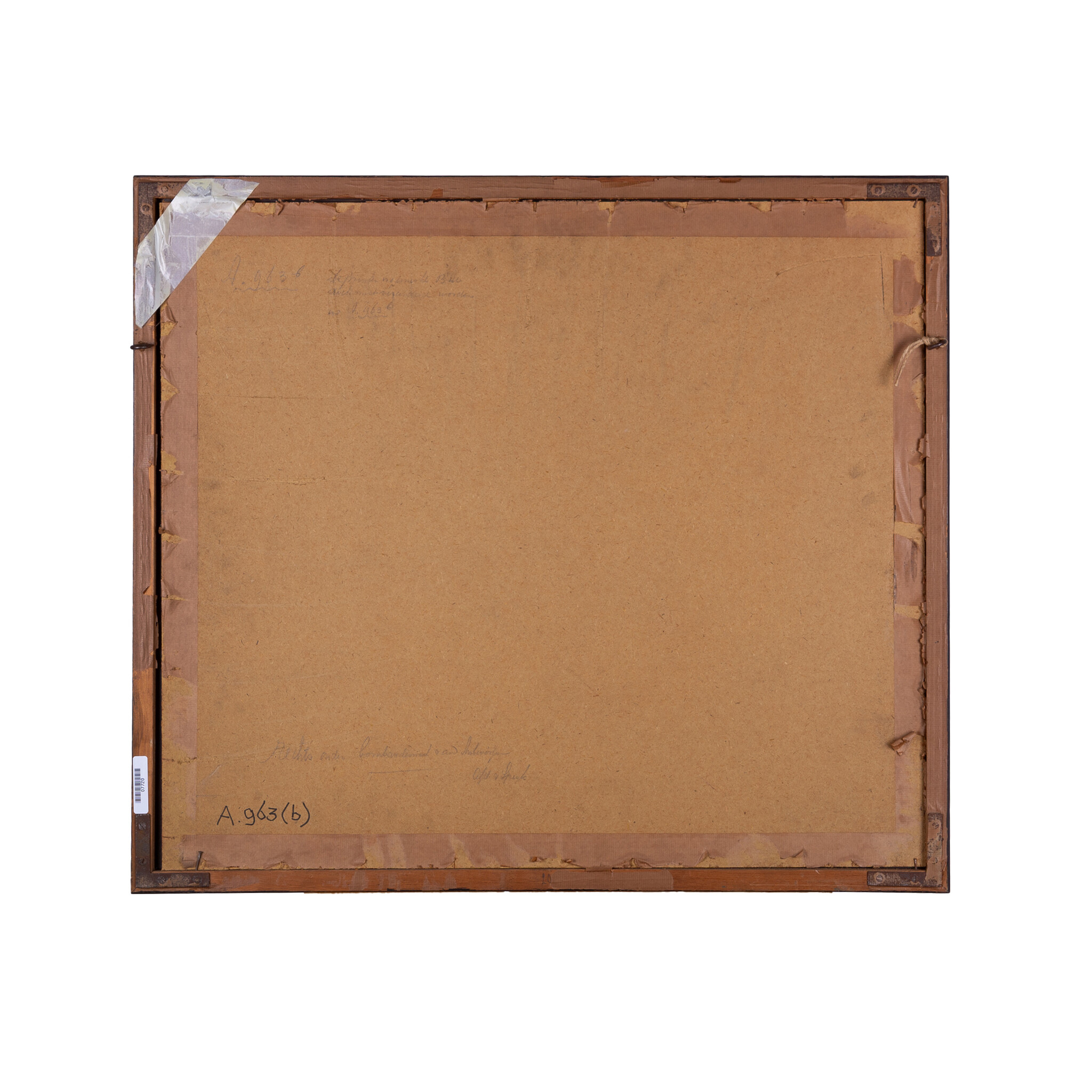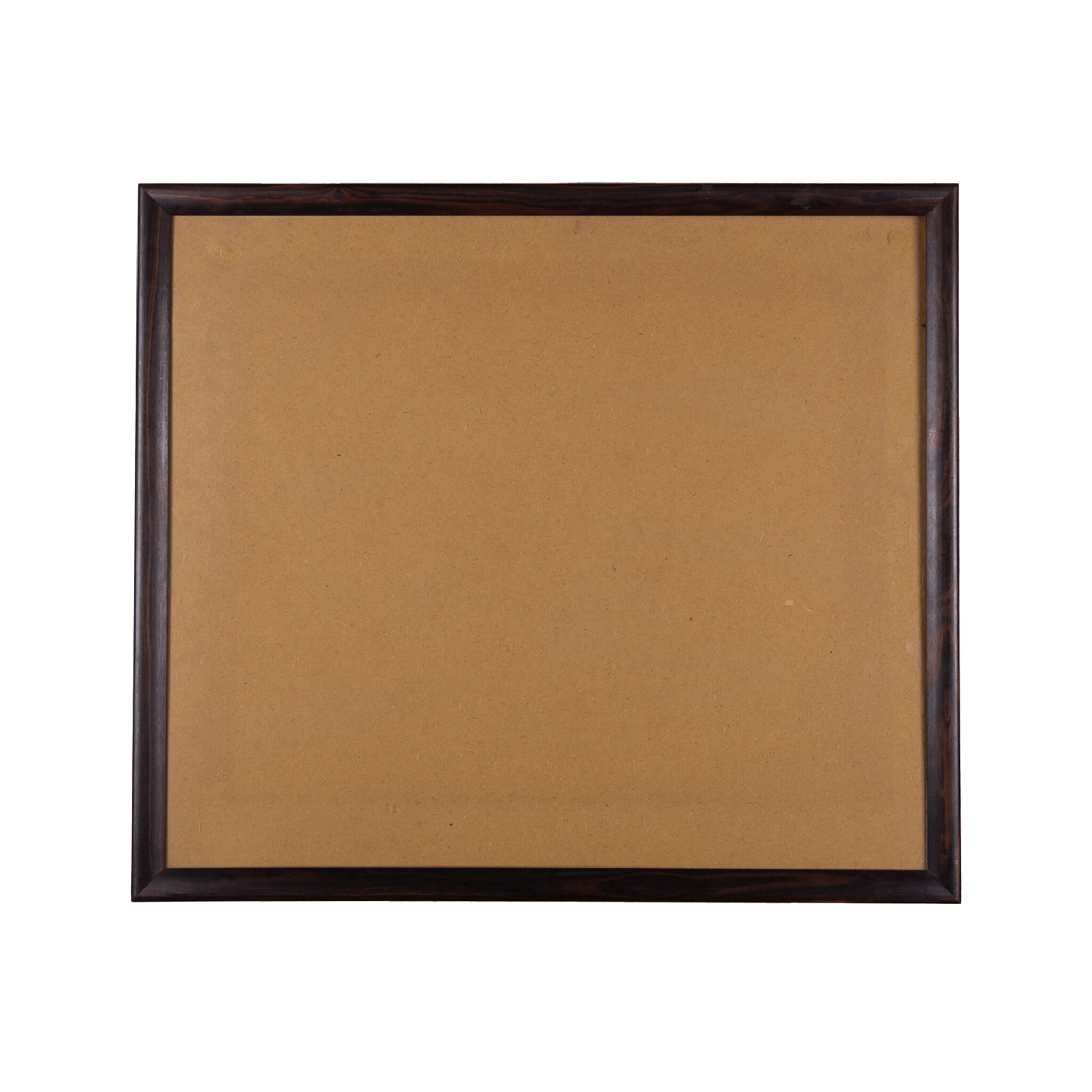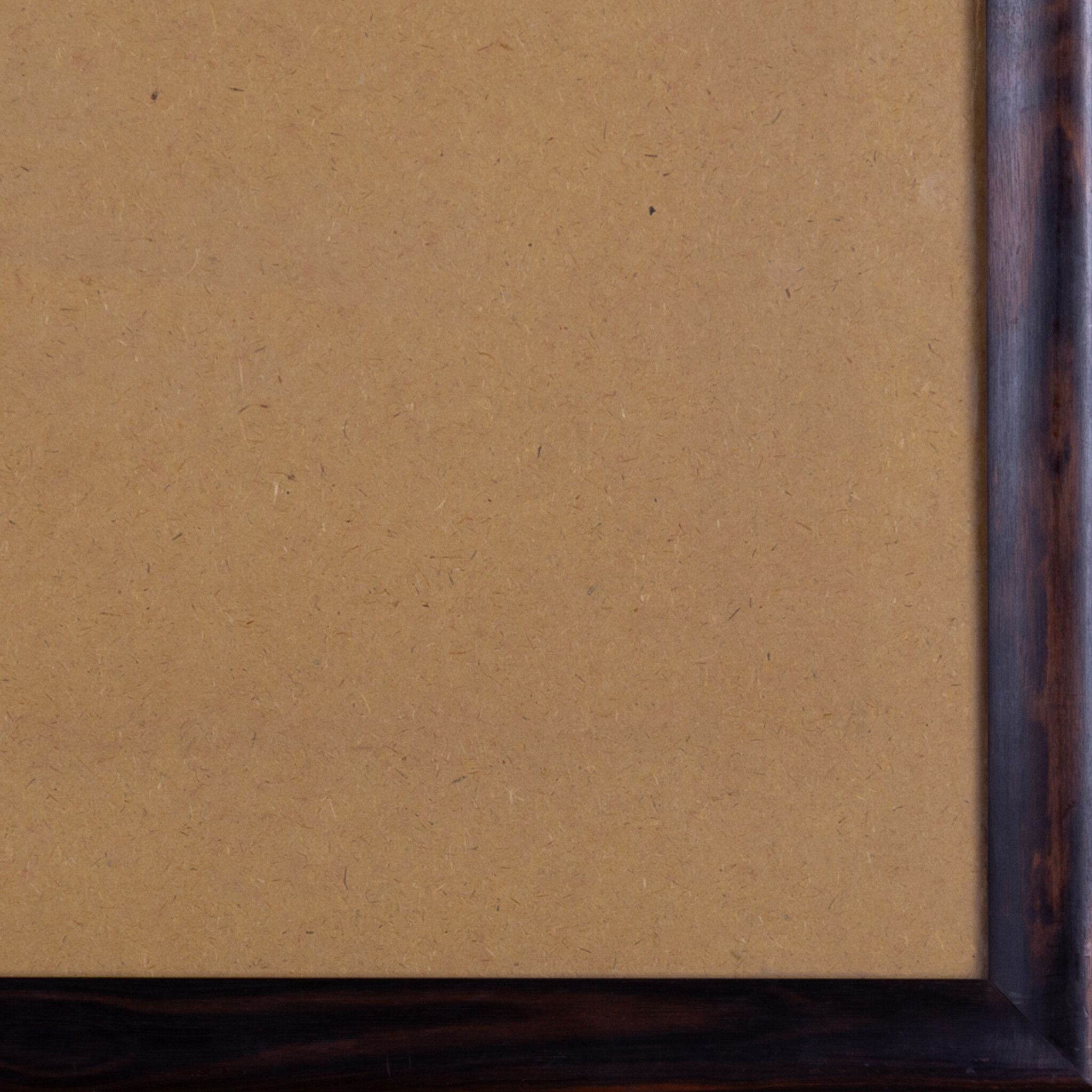 Bruine houten lijst; ca. 63,5 x 72,5 x 2,5 cm. Donkerbruine houten lijst met zichtbare houtnerf en helder glas, datering begin 20ste eeuw. De lijst heeft gehangen in Het Scheepvaartmuseum in Amsterdam. Conditie: lijst vertoont sporen van gebruik, glas zit een beetje los, veel spijkertjes om de achterplaat op z'n plaats te houden ontbreken. Afmetingen: Buitenmaat ca. 63,5 x 72,5 x 2,5 cm; Binnenmaat ca. 59 x 68 cm.