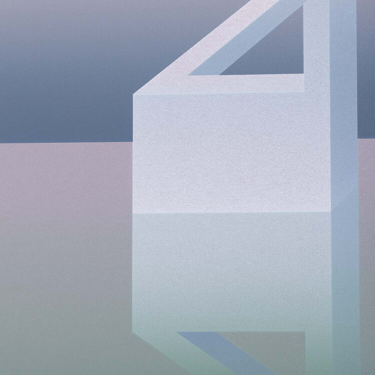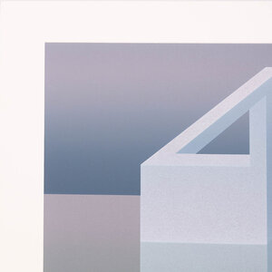 D. Huizer, Weerspiegeling van de werkelijkheid, jaartal onbekend. Zeefdruk in passe-partout zonder lijst. Abstract werk met balken, geen signatuur. Conditie: goed. Afmeting passe-partout: 60 x 60 cm.