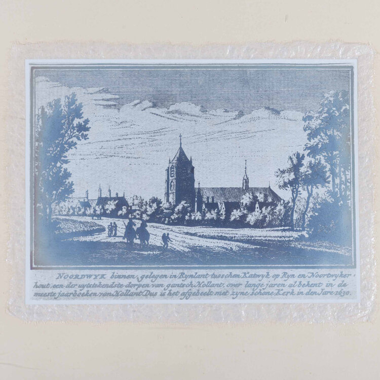 Dirk Pander, drie facsimile afdrukken van etsen met historische zichten op Noordwijk en Rijswijk. 'Noortwyk op Zee', 1630 door Abraham Rademaker; 'Abdye van Lewenhorst in Welstant', 1560 door onbekende kunstenaar en 'Noordwyk binnen, gelegen in Rynlant tusschen Katwyk op Ryn en Noortwyker-hout, een der uytstrkendste dorpen van gantsch Hollant, over lange jaren al bekent in de meeste jaarboeken van Hollant. Dus is het afgebeelt met zijne schone Kerk in den Jare 1630' door onbekende kunstenaar. De afdrukken zijn bevestigd op een soort zijde-papier en ingelijst in houten lijst met passe-partout. Rechtsonder is 'D. Pander Leiden' in het papier geëmbosst. Dirk Pander in 1895-1933 werkzaam in Leiden als retoucheur en fotograaf. Conditie: De achterbladen zijn wat vergeeld en de lijsten tonen gebruikssporen, een lijst heeft barsten in het glas. Afmeting per lijst: 39 x 48 cm.