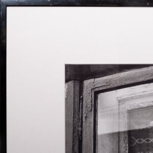 Dömötör, 'Zonder titel'. Tweeluik van zwart-witfoto's in donkergrijs metalen lijst met passe-partout. Een foto van een kat achter het raam en een foto van een oude vrouw voor het raam die bezig is met handwerk. Signatuur en datering ontbreken. Conditie: gebruikssporen lijst, linksonder barst in glas. Afmetingen lijst: 64,5 x 76,5 cm; beeldvlak kat: 39,5 x 22,5 cm; beeldvlak oude vrouw: 39,5 x 24 cm.