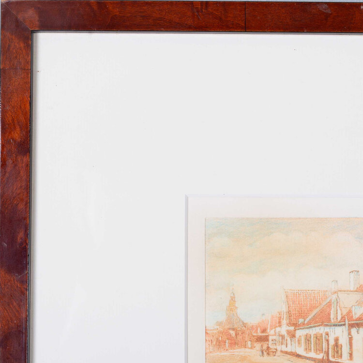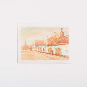 Drie ingelijste kleuren-afdrukken van Karel Kok in bruine lijst. Van boven naar beneden: zicht op een straat in Noordwijk, zicht op de Noordwijkse boulevard vanaf de zee gezien en een boot aan het strand klaar om uit te varen. Conditie: lijst toont lichte gebruikssporen, passe-partout verkleurd. Afmetingen lijst: 67 x 33 cm.