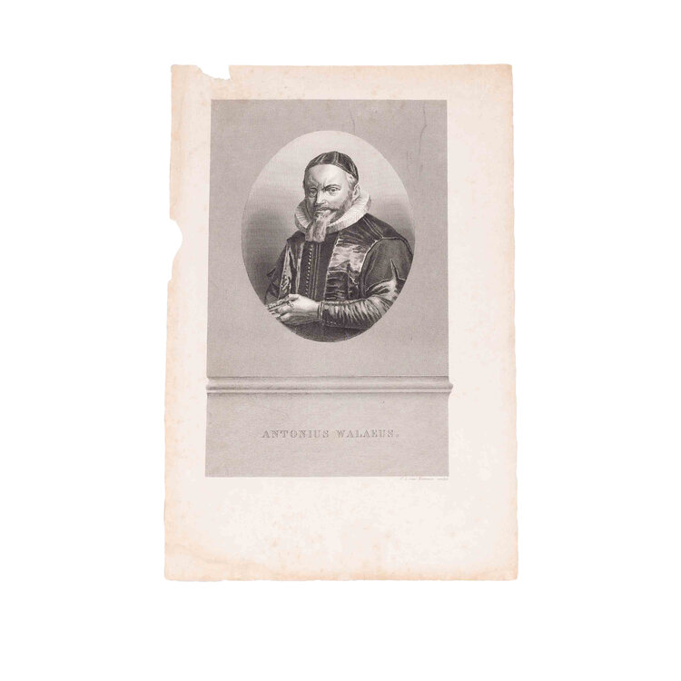 Prent 'Dirk Rafelszoon Camphuysen' (Gorinchem, 4 mei 1586 - Dokkum, 19 juli 1627), door J.F.C. Reckleben; Prent 'Nikolaas Grevinchoven' (Rotterdam, 1578 - Hamburg, Duitsland, mei 1632), door J.F.C. Reckleben; Prent 'Antonius Walaeus' (Gent, 3 oktober 1573 - Leiden, 9 juli 1639), door C.L. van Kesteren. Staalgravures. De prenten hebben middenonder een wapen en zijn zwart-wit. Datering: ca. 1850-1860. Conditie: De prenten vertonen sporen van ouderdom. Verkleuring, vlekken en beschadigingen aan de randen. Afmetingen beeldvlak prenten: ca. 21 x 13 cm.