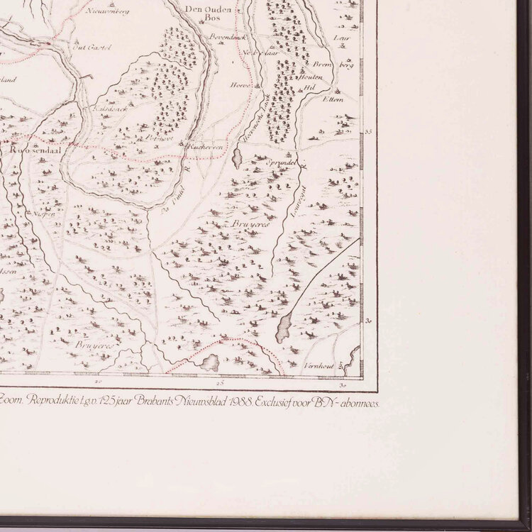 Drie reproducties in lijst. Kaart van Willemstad, Steenbergen en Bergen op Zoom, reproductie ter gelegenheid van 125 jaar Brabants Nieuwsblad 1988, Stadsarchief Bergen op Zoom; Stadsgezicht Roozendaal; Afbeelding van een haven in Bergen op Zoom. Alle objecten waren eigendom van de Congregatie van de Broeders van Huijbergen. Conditie: De werken en lijsten vertonen sporen van gebruik. Afmetingen: Kaart 40 x 30 x 1 cm; Stadsgezicht Roozendaal 33,5 x 24 x 1 cm; Afbeelding Bergen op Zoom 45,5 x 19 x 1 cm.