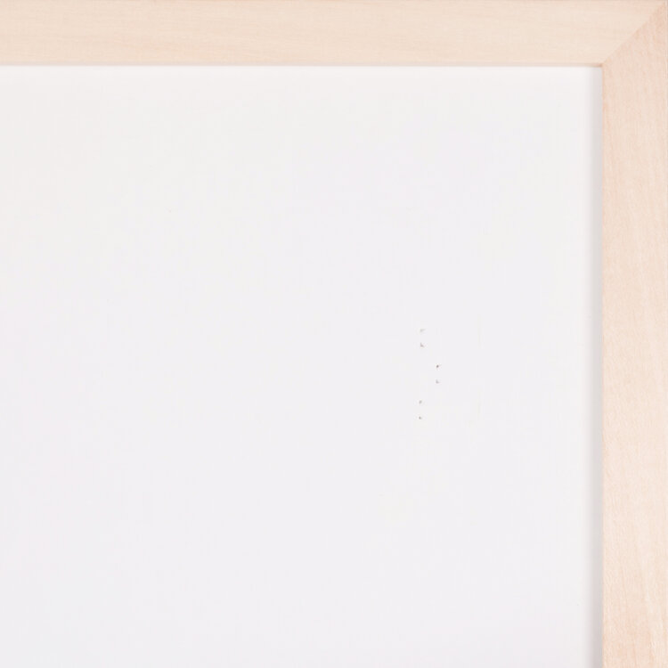 Dunne blankhouten wissellijst met helder glas voor een werk van 70 x 80 cm. Binnenmaat aan de voorzijde is 68,5 x 78,5 cm. De lijst is gebruikt bij een expositie van het Nederlands Fotomuseum. Conditie: lichte gebruikssporen aan de lijst, zoals vlekjes/krasjes en aan de achterzijde tekst. Afmeting buitenmaat: ca. 72,5 x 82,5 x 2 cm.