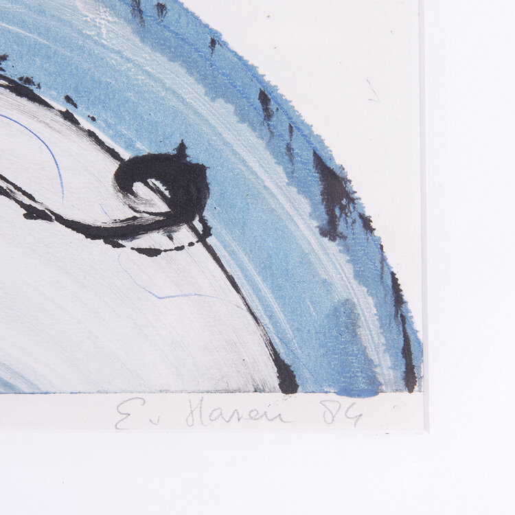 Groot werk getiteld Hoogtezon, van de hand van Elma van Haren. Gemengde technieken op papier, gesigneerd rechtsonder. Datering: 1984.