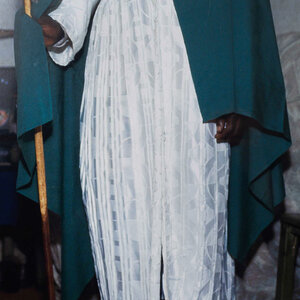 Foto van Andrew Curling (1970, Harare, Zimbabwe), 2001. Kleurenfoto in lijst van een man in traditionele Afrikaanse kleding in Mutare, Zimbabwe. De foto komt uit een serie van vier foto's. Andrew Curling was voor deze serie gefascineerd door mensen met een sterke religieuze roeping, die opereren in grote ruimtes, maar zelf wonen in een klein onderkomen. Hun liefde voor God kende geen grenzen. Deze foto behoort tot de foto expositie 'Les intérieurs du monde' uit 2001 in het Zaans Museum. Een fascinerend document van interieurs in 7 steden door 14 fotografen uit 5 landen, in samenwerking tussen de gemeenten Zaanstad en Haarlem met hun zustersteden. Mutare heeft een stedenband met Haarlem. Conditie: Vertoont gebruikssporen. Afmetingen lijst: 55 x 38 cm.