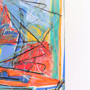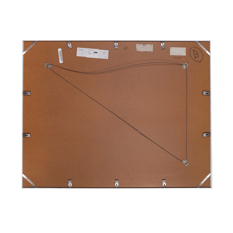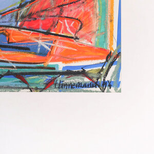 Frits Linnemann, G 211, 1994. Gemengde techniek op papier in wit metalen lijst. Kleurrijke abstracte voorstelling van wilde lijnen en vormen. Signatuur rechtsonder. Conditie: gebruikssporen aan de lijst. Afmeting lijst: 71 x 91 cm.
