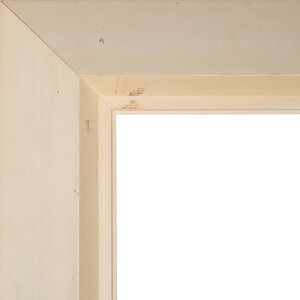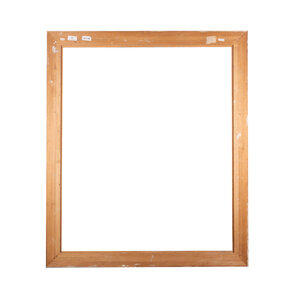 Grote schilderijlijst, 20ste eeuw. De crèmewitte houten schilderijlijst heeft een verloop in dikte van 1cm aan de buitenkant naar 4 cm aan de binnenkant. Conditie:de lijst vertoont gebruikssporen, zoals krasjes, vlekken en is verkleurd. Afmetingen: buitenmaat ca. 138 cm x 117,5 x 1 cm; binnenmaat ca. 118,5 x 98 x 4 cm.