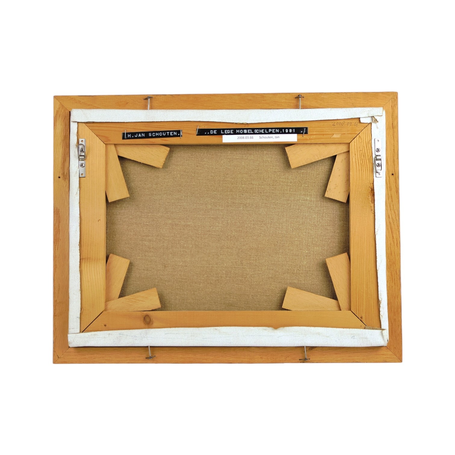 H. Jan Schouten, 'De lege mosselschelpen', 1981. Olieverf op doek. Stilleven met oa schelpen en stenen. Signatuur linksonder. Jan Schouten (Rotterdam 1906 - Gouda 1987) volgde na een kort bestaan als priester en als godsdienstleraar in Eindhoven de Academie voor Beeldende Kunst te Tilburg. Daarna vestigde hij zich als kunstenaar in Gouda en werd later directeur van de stedelijke Musea Gouda. Conditie: goed. Afmetingen: beeldvlak 30,3 x 40,3 cm, met lijst 35 x 45 x 3,6 cm.