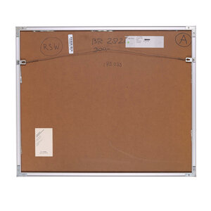 Hans Klaui, Zonder titel, 1986. Zeefdruk op papier in metalen lijst, oplage 12/23. Abstracte voorstelling van blauwe vormen voor een zwarte achtergrond. Signatuur en jaar linksonder, oplagenummer rechtsonder. Conditie: goed, gebruikssporen aan lijst. Afmeting werk zonder lijst: 38 x 48 cm, incl. lijst: 55 x 65,5 cm.