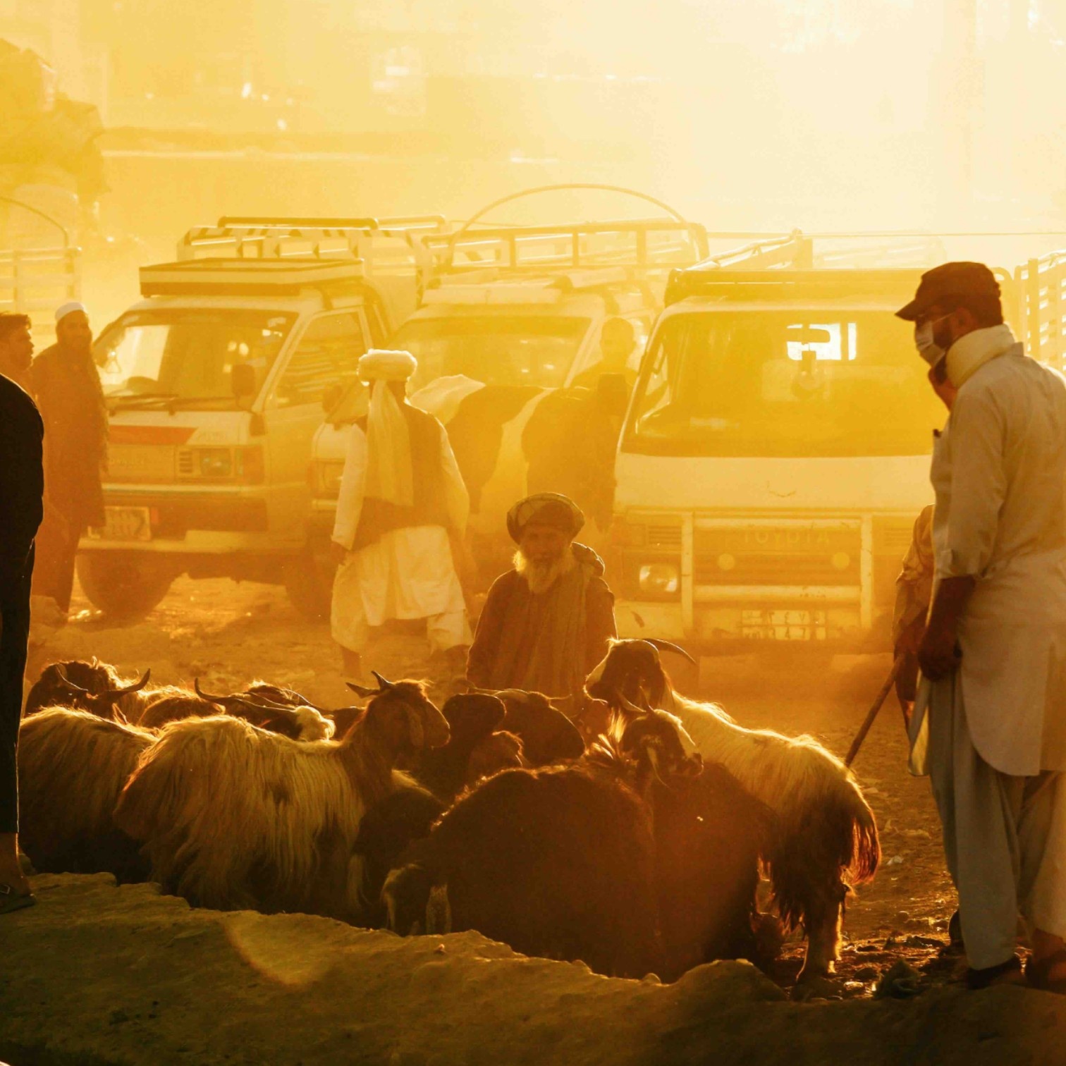 Hedayat Amid, 'Livestock seller', 29-7-2020. C-print achter acrylaat. "Een man wacht op klanten in de aanloop naar Eid al-Adha aan de rand van Kabul. Eid al-Adha is een van de twee heiligste islamitische feestdagen die elk jaar worden gevierd. Het markeert de jaarlijkse hadj, of pelgrimstocht naar Mekka, de heiligste plaats in de islam. Moslims slachten een offerdier en verdelen het vlees in drie delen: één voor de familie, één voor vrienden en verwanten, en één voor de armen en behoeftigen." Deze foto is geëxposeerd bij de fototentoonstelling ‘Hope & Fear’ in Museum Vlaardingen in 2023. De foto's zijn van de Vlaardingse NRC-fotograaf / Afghaanse oorlogsfotograaf Hedayat Amid. Ze tonen het dagelijkse leven in Afghanistan voor de machtsovername door de Taliban in 2021. Het zijn indrukwekkende foto's van zijn laatste jaar in Afghanistan, voor hij moest vluchten voor de Taliban en in Vlaardingen terecht kwam. Hedayat Amid is genomineerd voor de categorie Documentair Nationaal van de Zilveren Camera 2024. De foto's zijn hoogwaardig afgedrukt op Polielettronica fotoafdruk, op Fujifilm DPII glossy fotopapier, verlijmd achter 3mm helder acrylaat, op 3mm Dibond, met aluminium. Conditie: goed. Afmetingen: 80 x 120 cm.