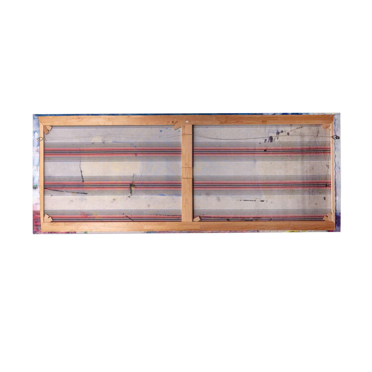 Herman Brood, '2 figuren', jaartal onbekend. Acryl op luifeldoek gespannen op hout zonder lijst. Twee figuren in geel voor een blauwe achtergrond. Onderin in zwart gesigneerd met 'brood'. Door de verf heen schijnen de strepen van het zonnescherm door, wat het werk een grafisch effect geeft. Een certificaat van echtheid is bijgeleverd. Conditie: goed. Afmeting doek: 69 x 185 cm.