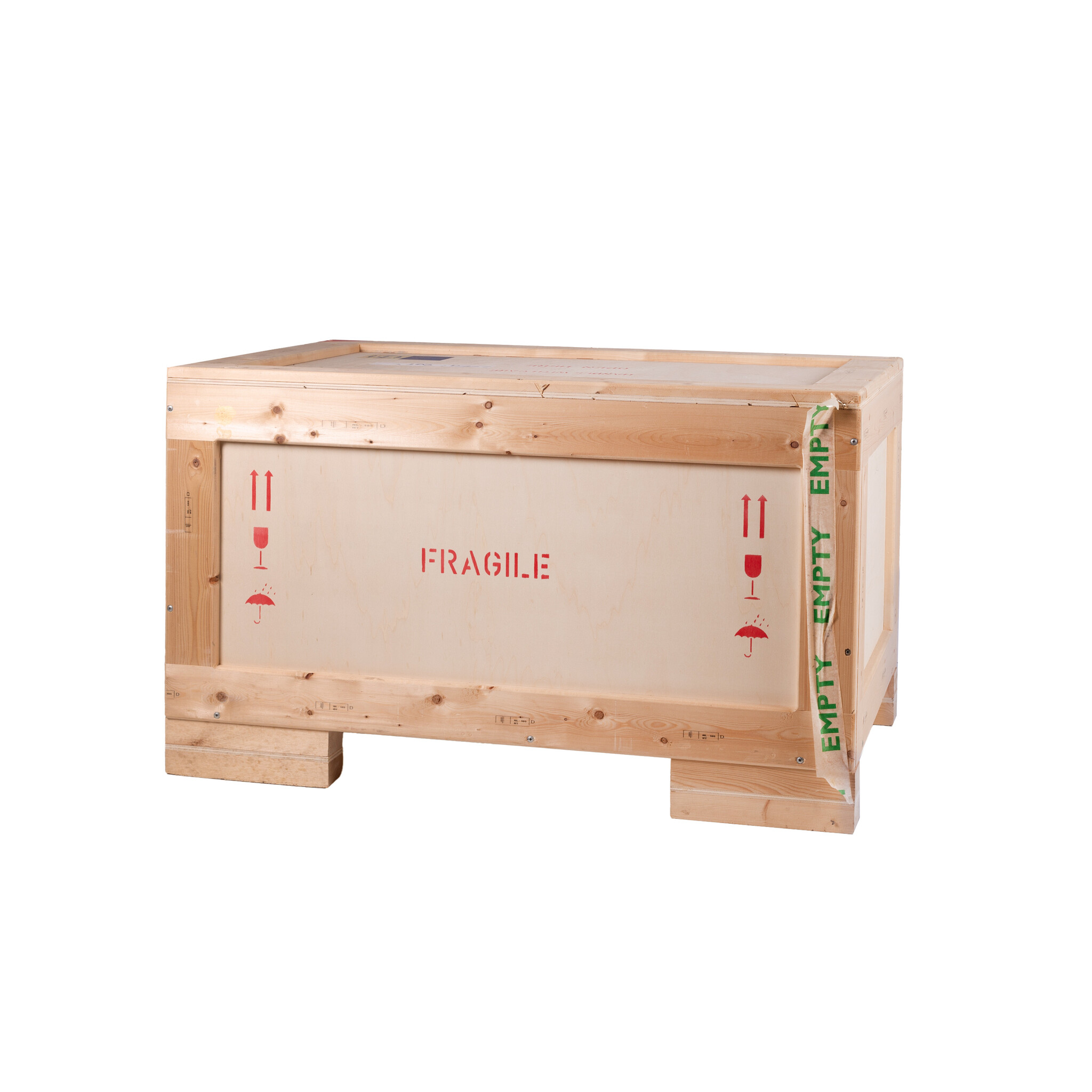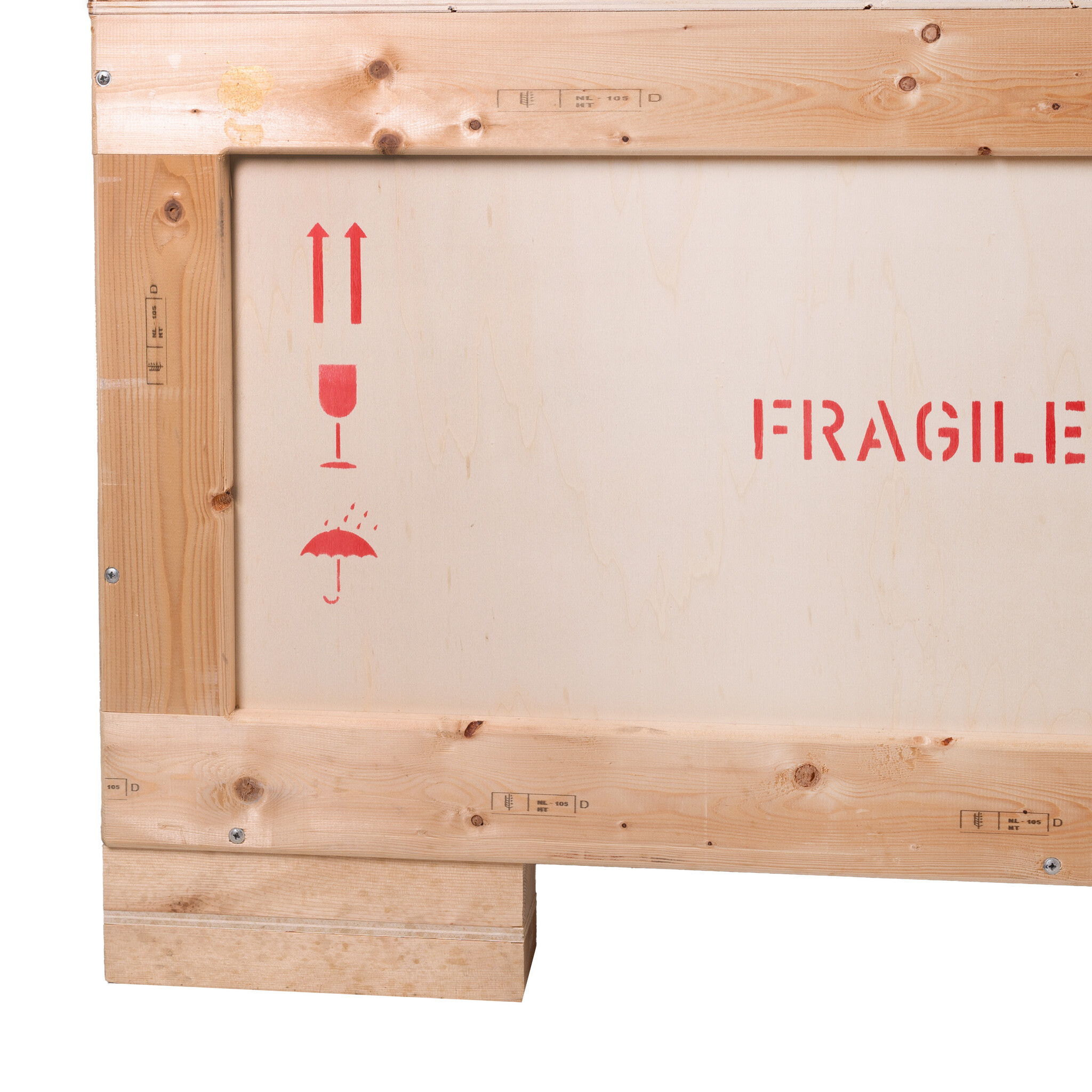 Houten kist voor kunsttransport, 21ste eeuw. De wanden zijn aan de binnenkant bekleed met schuim. De kist is gebruikt door het Nederlands Fotomuseum in Rotterdam voor het veilig vervoeren van collectiemateriaal. Conditie: gebruikt. Afmetingen: buitenmaat ca. 69 x 118 x 74,5 cm; binnenmaat ca. 45 x 103 x 61 cm.
