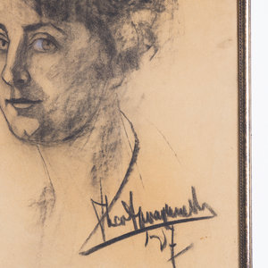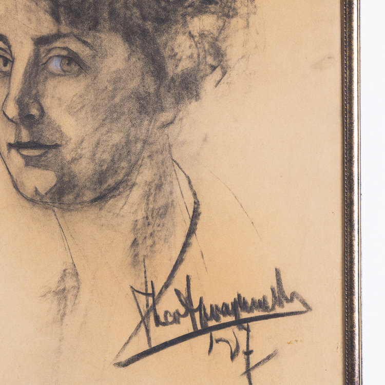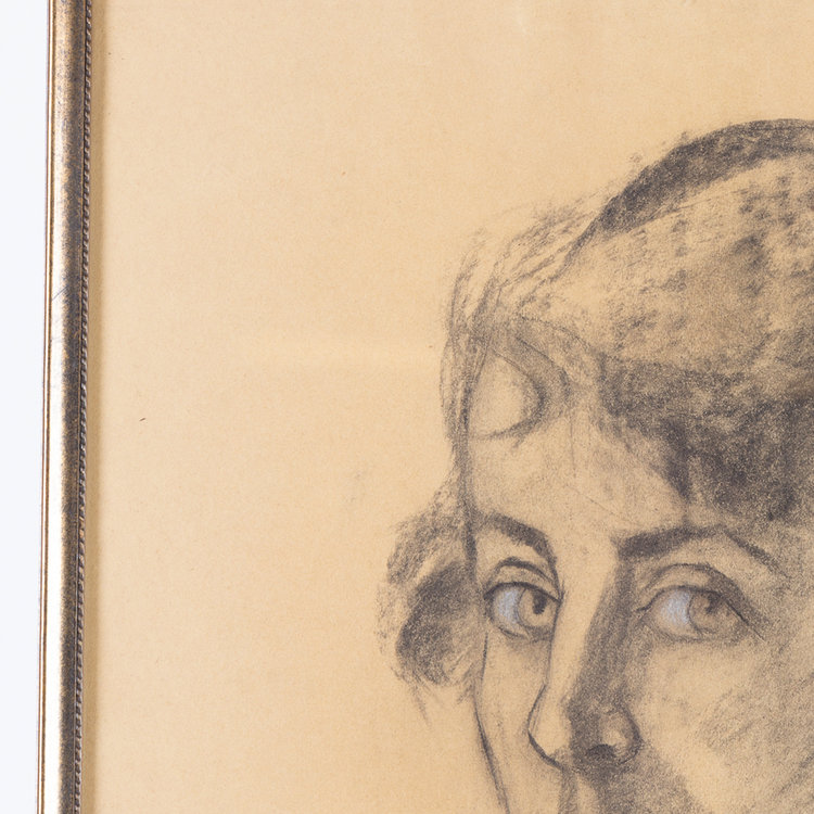 Theo Swagemakers, Houtskooltekening van een vrouw, 1927. Houtskool op papier, 51.5 x 44 cm. Schetsmatig portret van een vrouw in houtskool, ingelijst achter glas en gesigneerd rechtsonder. Theo Swagemakers (1898-1994) is een bekende Nederlandse schilder van voornamelijk portretten en stillevens. Hij genoot zijn opleiding in Brussel en Parijs en heeft verschillende beroemdheden mogen portretteren, zoals een groot deel van de Koninklijke familie. Hiervoor heeft hij de Thérèse van Duyl-Schwartzeprijs in ontvangst mogen nemen in 1958. Conditie: het werk is in goede conditie. De lijst vertoont enkele sporen van gebruik, zoals slijtage op de hoeken, met name linksonder.