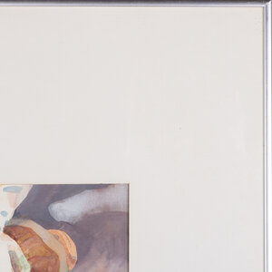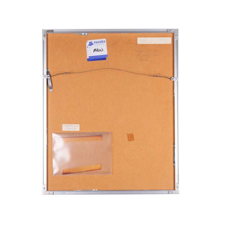 Ineke Ebbinge, 'Dwingerige mens'. Aquarel op papier in metalen lijst met passe-partout. Afbeelding van een plassend jongetje dat zweeft. Signatuur rechtsonder. Datering: 1980. Conditie: gebruikssporen lijst, taperesten op glas. Afmetingen lijst: 60,5 x 70,5 cm; beeldvlak: 28,5 x 25 cm.
