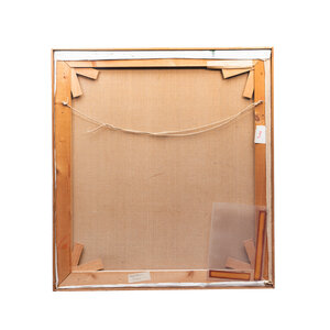 Ineke Ebbinge, 'Kunstenaar'. Olieverf op doek in houten lijst. Portret van een vrouw in een natuurlijke omgeving, met in haar hand een penseel. Signatuur rechtsonder. Datering: 1981. Conditie: hier en daar kleine beschadigingen op het doek en de lijst. Afmetingen: 66,5 x 61,5 cm.