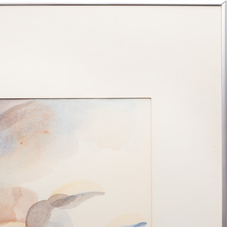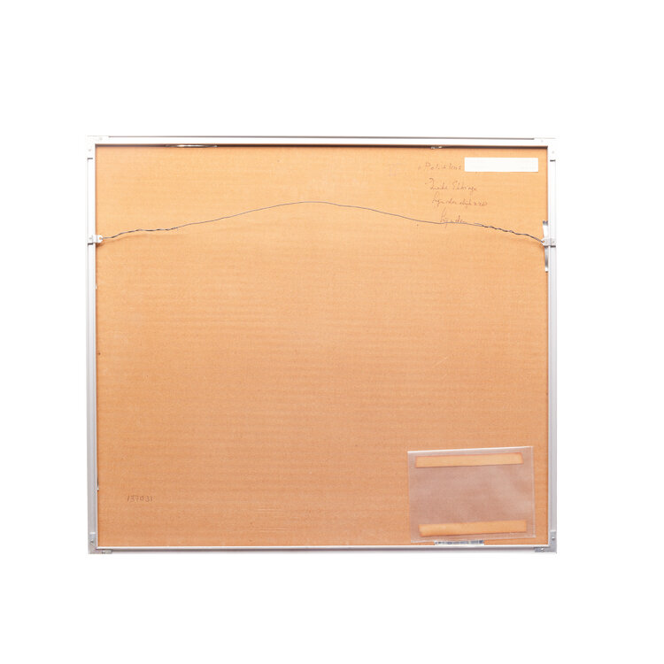 Ineke Ebbinge, 'Politicus', 1980. Aquarel op papier in metalen lijst. Surrealistische compositie met diverse figuren, in het midden een soort regenboog. Signatuur rechtsonder. Conditie: passe-partout is verkleurd en op de kunststof plaat zit een vlek en krassen. Afmetingen lijst: 70 x 80 cm; beeldvlak: 42 x 59 cm.