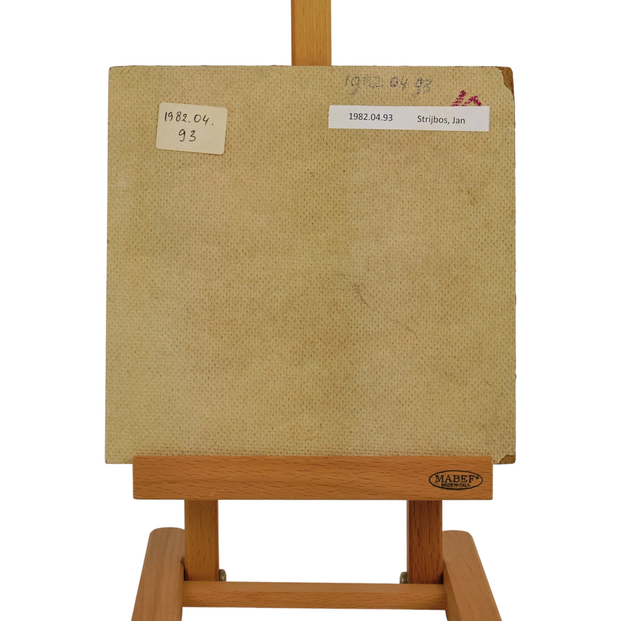 Jan Strijbos, 'Portret van een vrouw', 1970-1980. Olieverf op hardboard, zonder lijst. Portret van een vrouw voor een groene achtergrond. Signatuur ontbreekt. Jan (Johannes) Strijbos (Eindhoven 1896 - Merkelbeek 1977) was timmerman van beroep en na zijn pensioen een autodidact-kunstschilder in de naïeve stijl. Conditie: vertoont gebruikssporen, op de achterkant zijn de randen rechtsboven en rechtsonder beschadigd. Afmetingen: 18,4 x 18,8 x 0,3 cm.