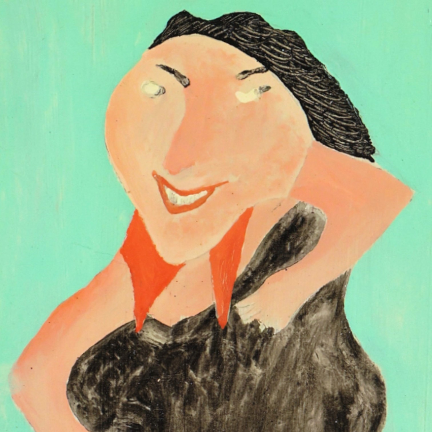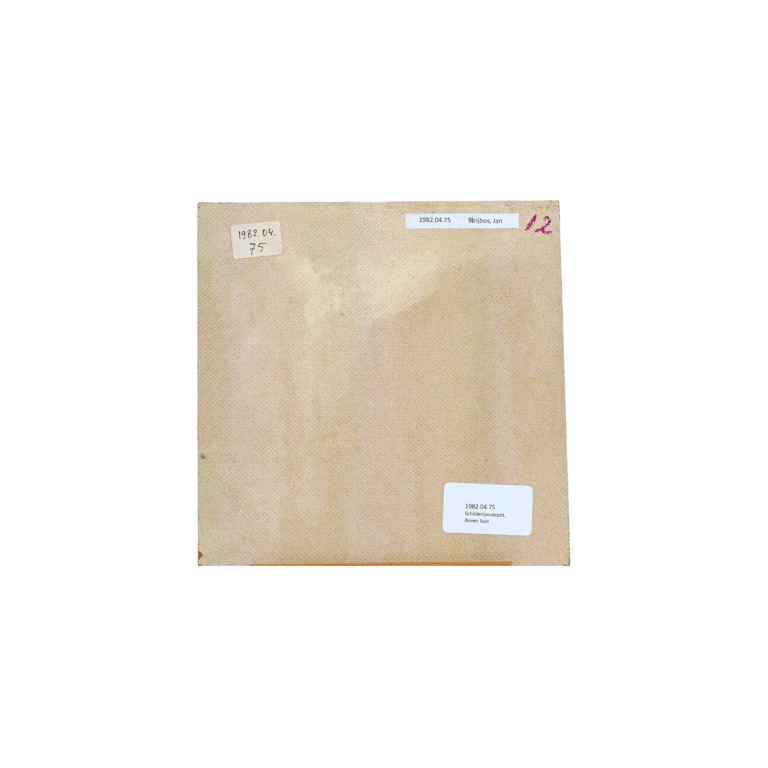 Jan Strijbos, 'Vrouw in zwarte jurk', 1960-1980. Olieverf op hardboard, zonder lijst. Portret van vrouw in zwarte jurk op blauwgroene achtergrond. Signatuur ontbreekt. Jan (Johannes) Strijbos (Eindhoven 1896 - Merkelbeek 1977) was timmerman van beroep en na zijn pensioen een autodidact-kunstschilder in de naïeve stijl. Conditie: vertoont gebruikssporen. Afmetingen: 23,5 x 23,5 cm.