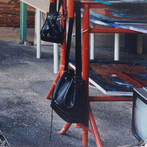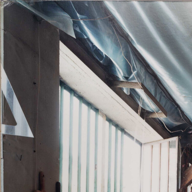 Foto uit een serie van foto's van Jean-Louis Garnell (1954, Dolo, Frankrijk) in Angers, Frankrijk, 2001. Foto op aluminium plaat van een interieur van een atelier. Over deze serie zei Jean-Louis Garnell: "I'm interested in interiors that change in the course of the days, in connection with the circumstances in life, the signs of daily life." Deze fotoserie behoort tot de foto expositie 'Les intérieurs du monde' uit 2001 in het Zaans Museum. Een fascinerend document van interieurs in 7 steden door 14 fotografen uit 5 landen, in samenwerking tussen de gemeenten Zaanstad en Haarlem met hun zustersteden. Angers heeft een stedenband met Haarlem. Conditie: Vertonen gebruikssporen, beschadigingen aan de randen, taperesten op de achterkant. Afmetingen: 40 x 50 cm.