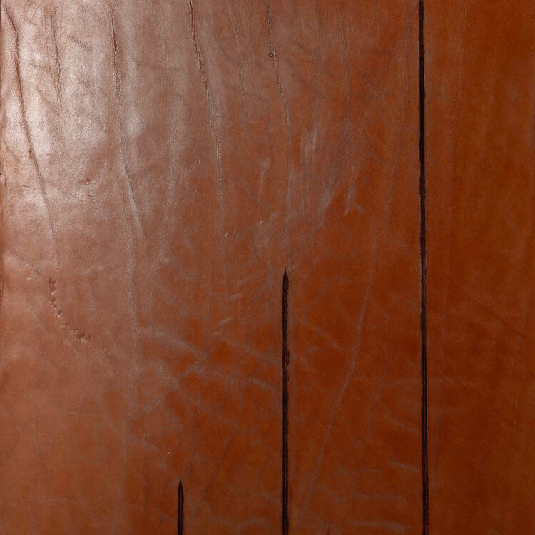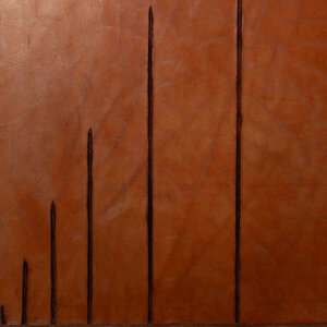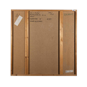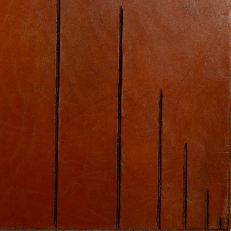 J.L. Wortel, 'Pyramide', 1979. Leder op paneel. Abstract werk van ingesneden lijnen in bruin leer. De lijnen in piramidevorm zijn zwart gemaakt. Signatuur rechtsboven. Conditie: vertoont gebruikssporen. Afmetingen: ca 105 x 105 x 5,5 cm.